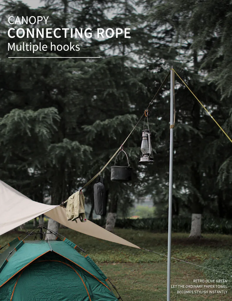 Cinturón de extensión de toldo de tienda al aire libre, tendedero multifuncional, cordón, cuerda a prueba de viento, accesorios de viaje para acampar