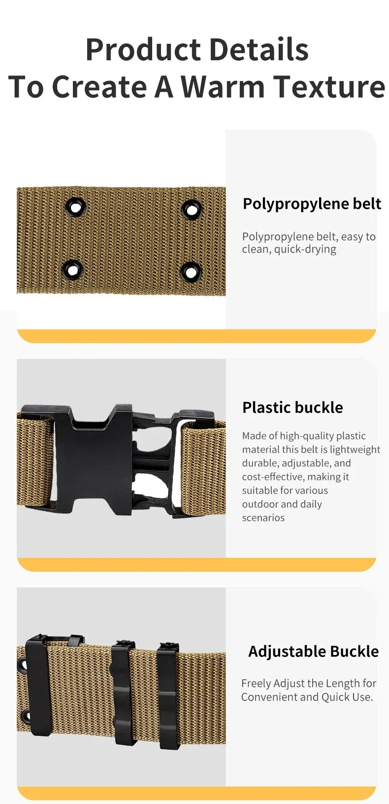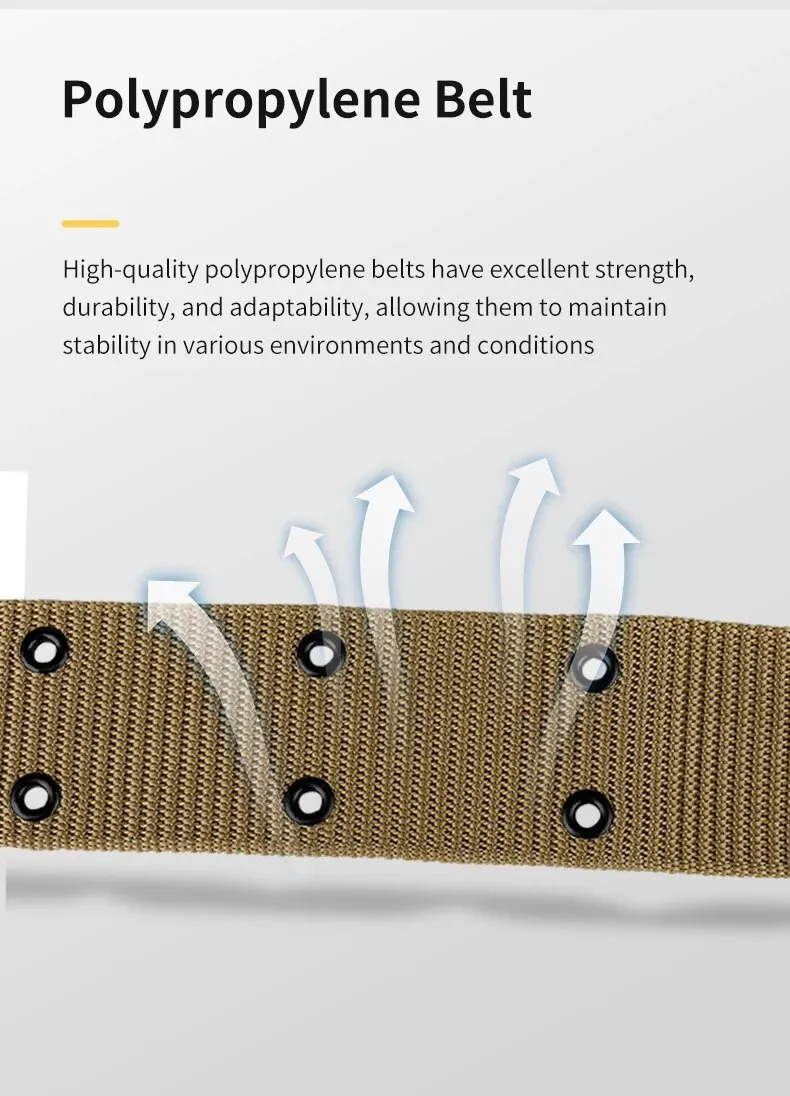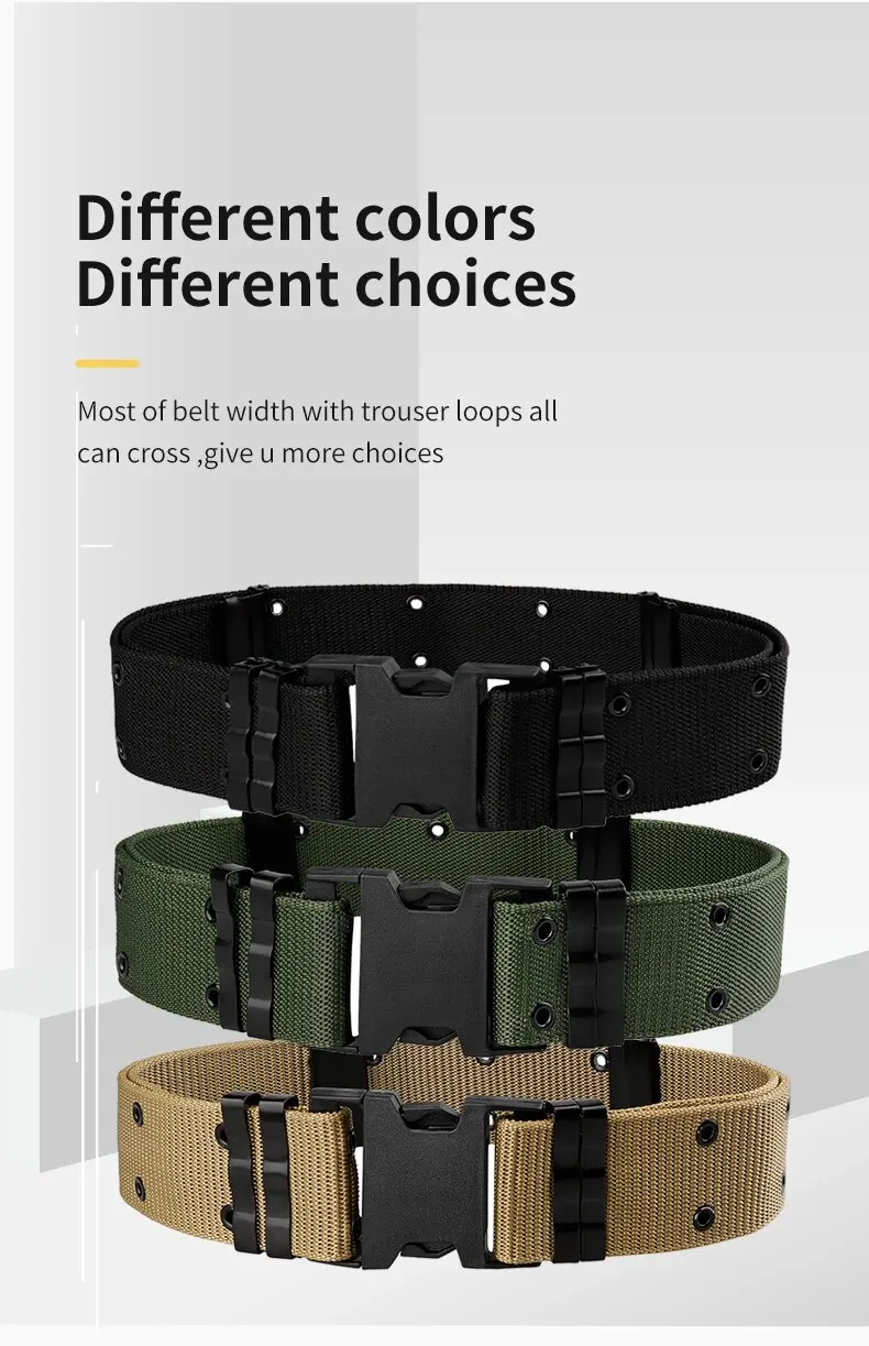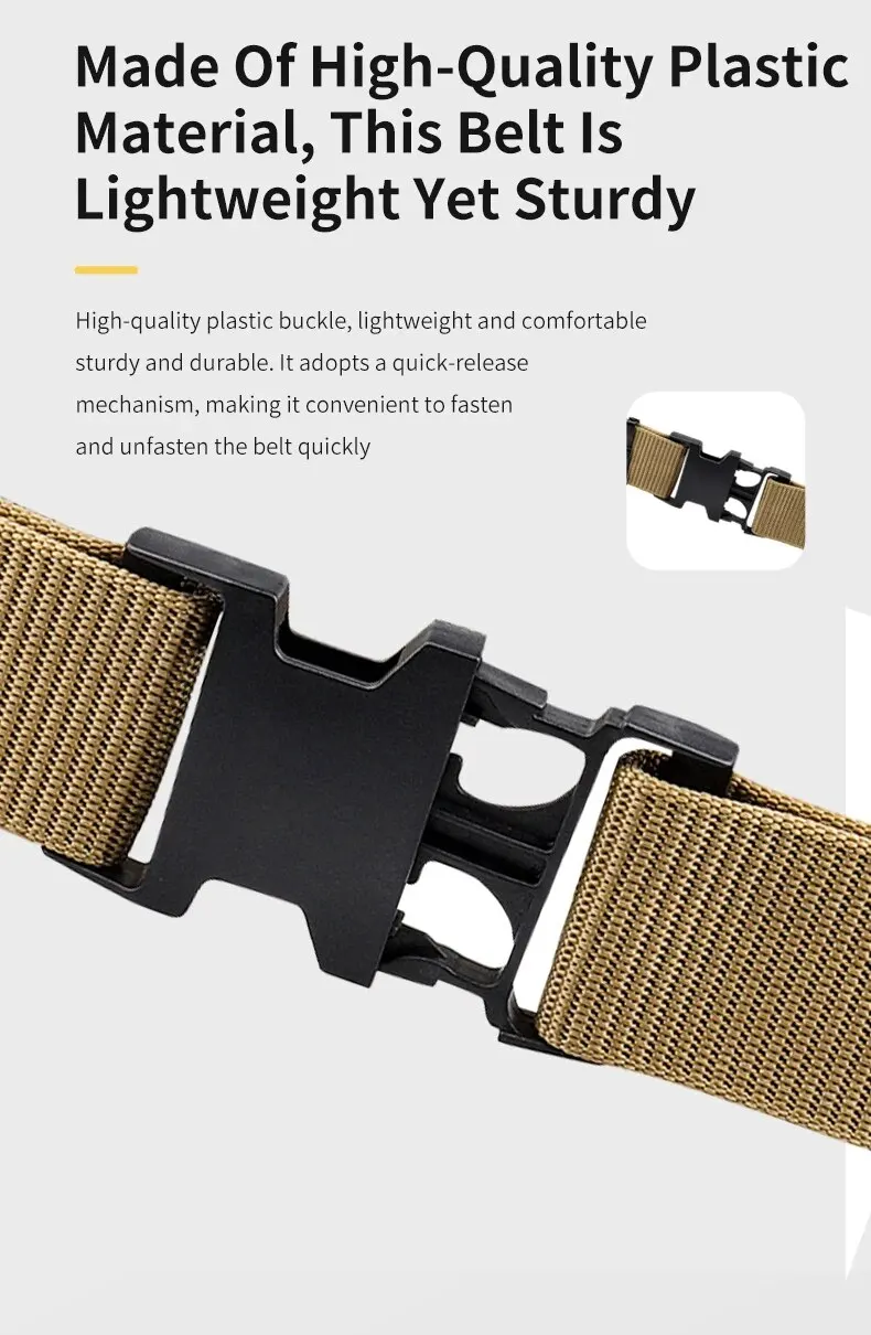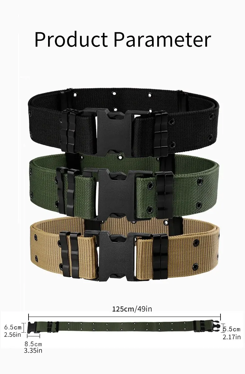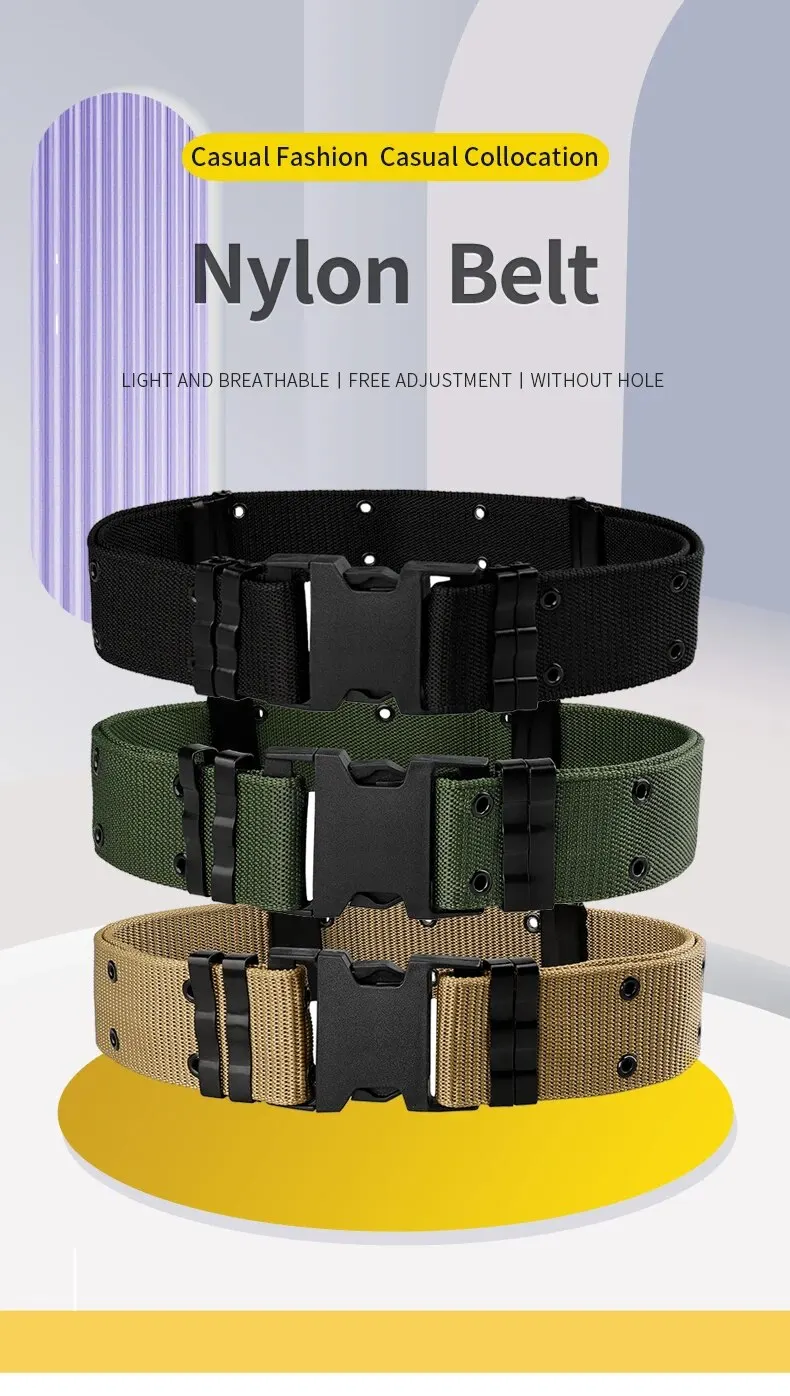 Un cinturón exterior táctico para hombre hecho de material de nailon, con un anillo de fijación de metal y una hebilla de ajuste, adecuado para deportes al aire libre.