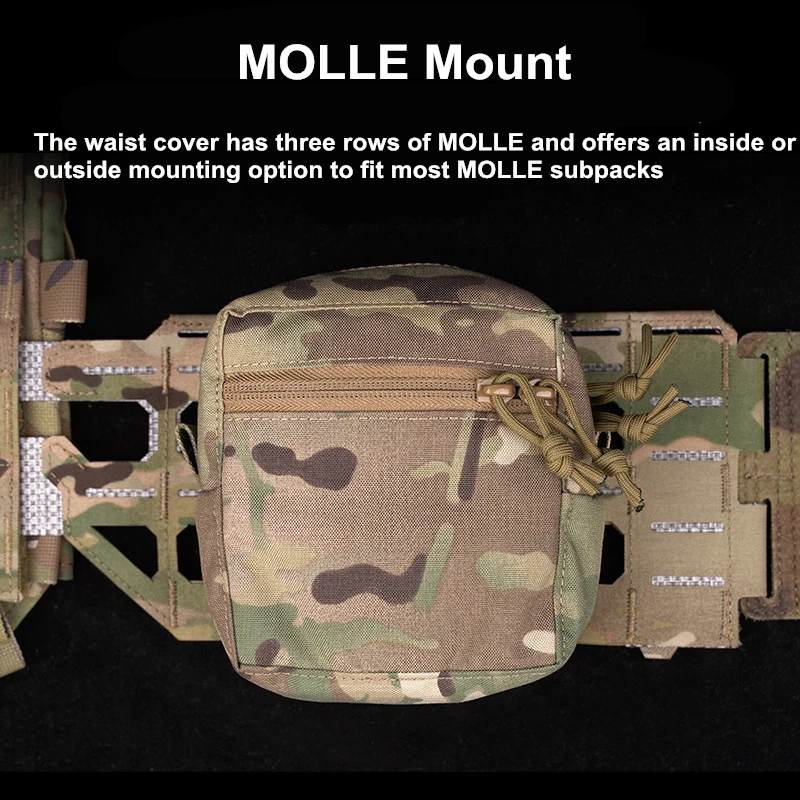 MONTAJE MOLLE: esta faja tiene 3 filas de molle, lo que brinda opciones de montaje interior o exterior para adaptarse a la mayoría de las bolsas de accesorios Molle.