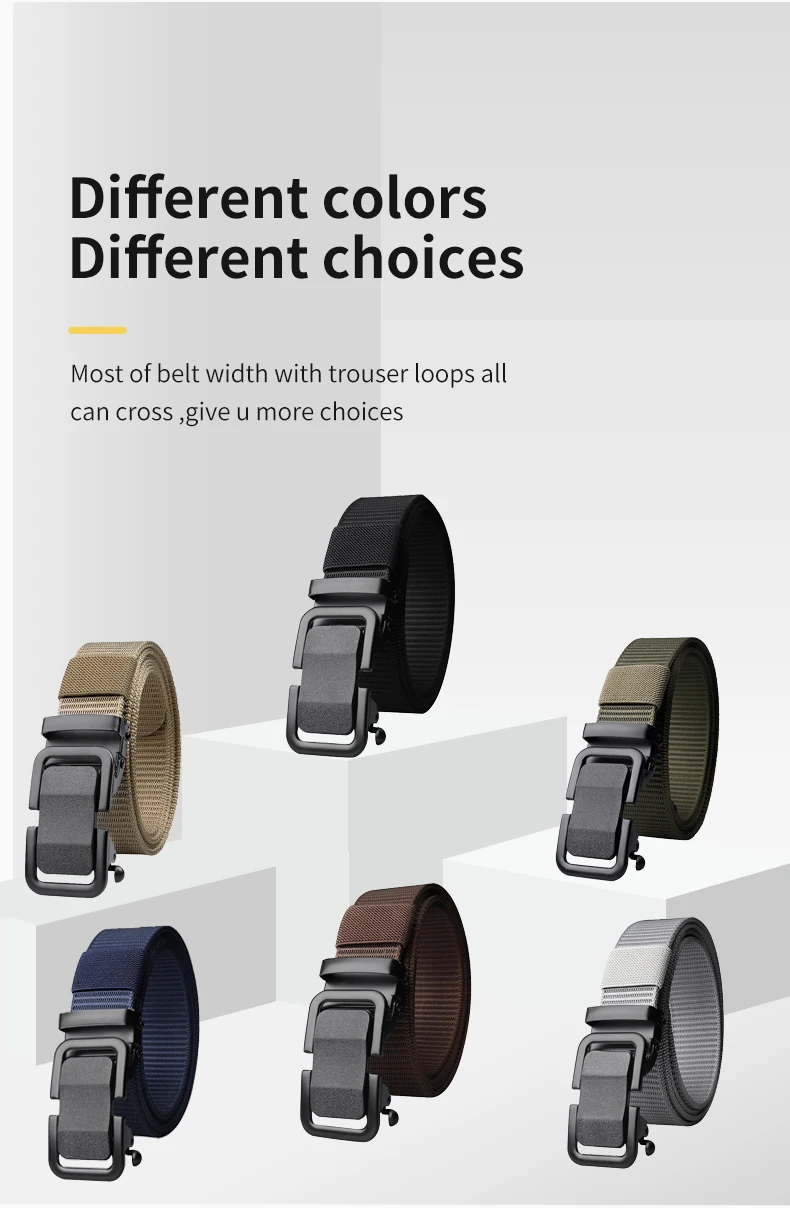 Cinturón para hombre con hebilla de metal automática, correas de lona de nailon, cinturón de trabajo al aire libre, cinturón de nailon con hebilla de clic