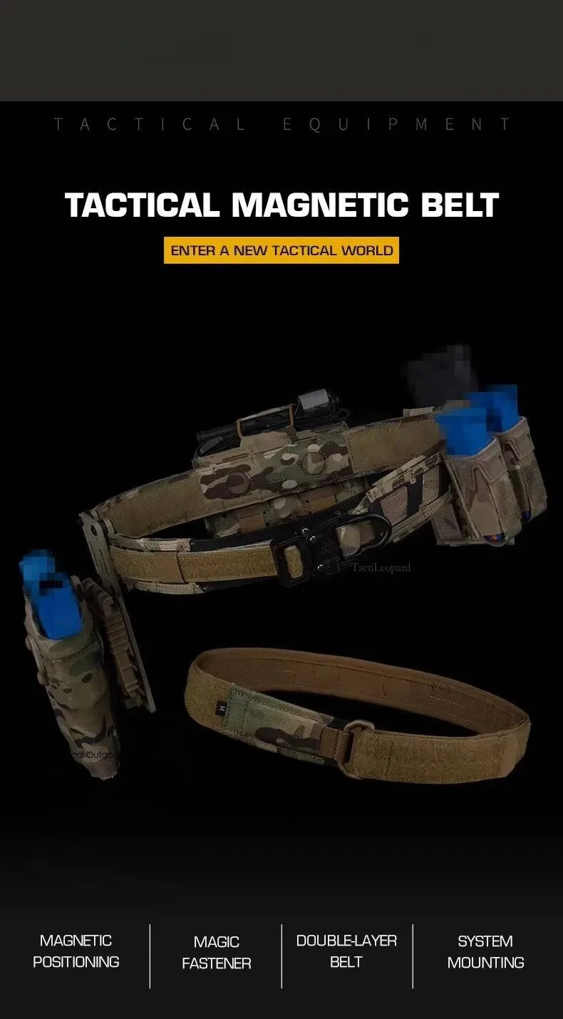 Cinturón magnético para exteriores, hebilla de tracción rápida, imán de doble capa, cinturón MOLLE, accesorios de equipo de entrenamiento táctico para caza Airsoft