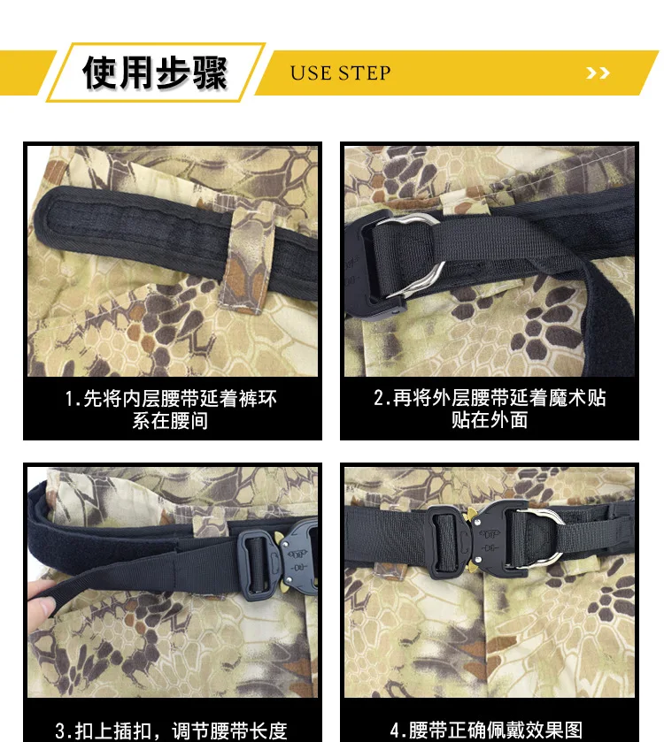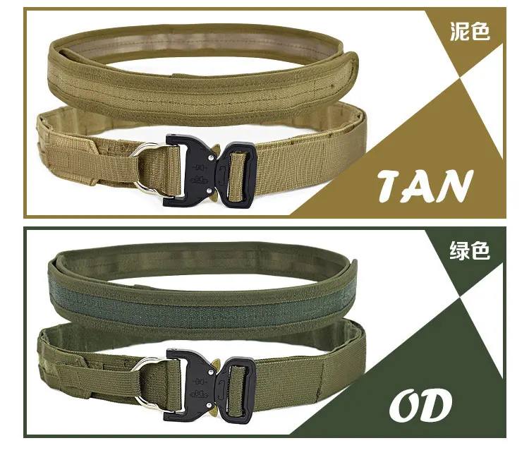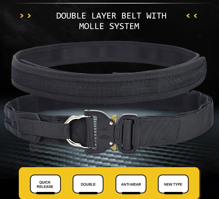 Cinturón MOLLE de liberación rápida, cinturón táctico resistente de doble capa, 3,8 cm, 125cm, 130cm, 135cm de longitud para entrenamiento de tiro