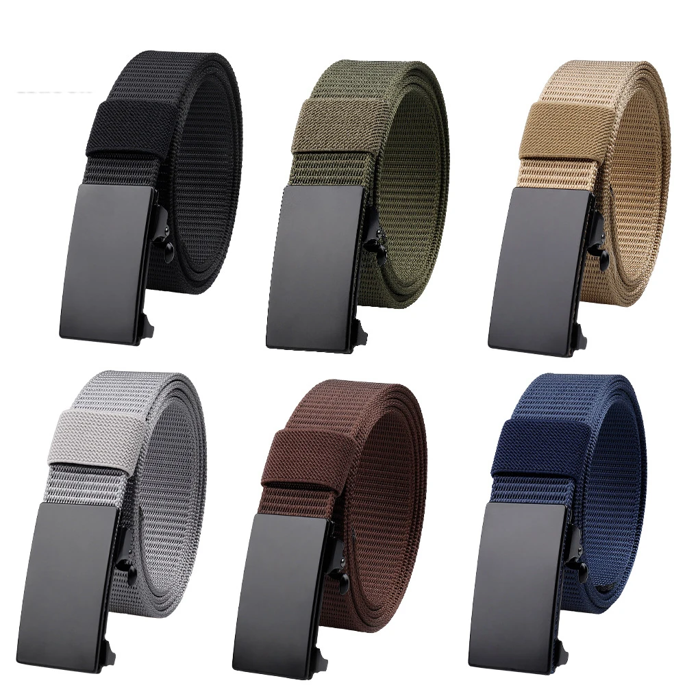 Cinturón de nailon con hebilla automática para hombre, cinturón táctico de alta calidad para herramientas al aire libre, pantalones vaqueros de Color sólido