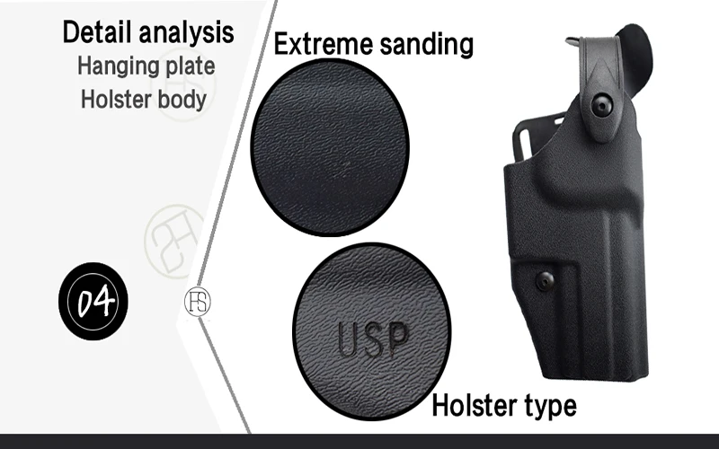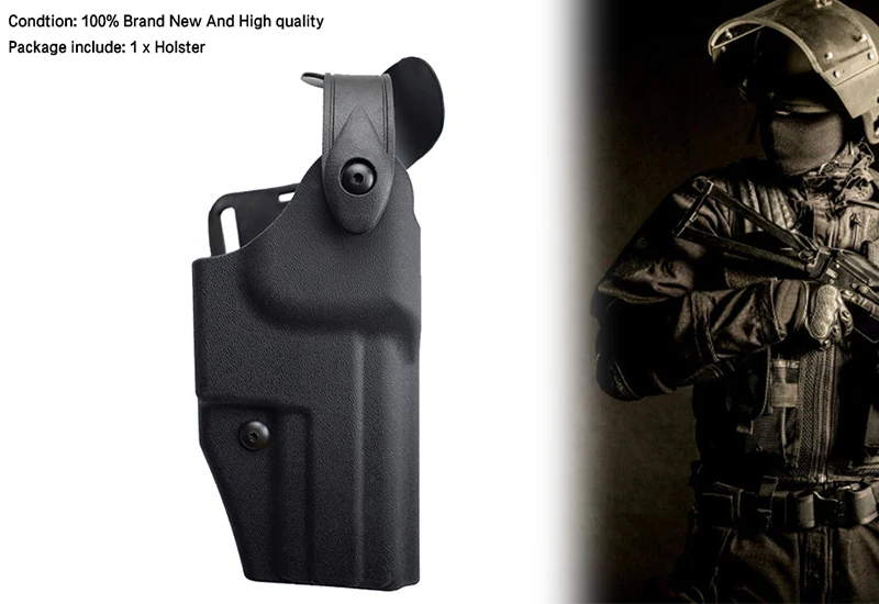 Material: poliuretano de alta calidadApto para: pistola HK USPPeso: 380gColor: negroAplicación: militar/táctico/policía/pistola del Ejército/airsoft/pistola/juego de guerra/caza al aire libre2. El paquete incluye:-1 funda-1 bucle de cinturón