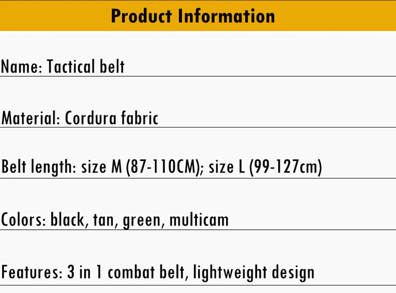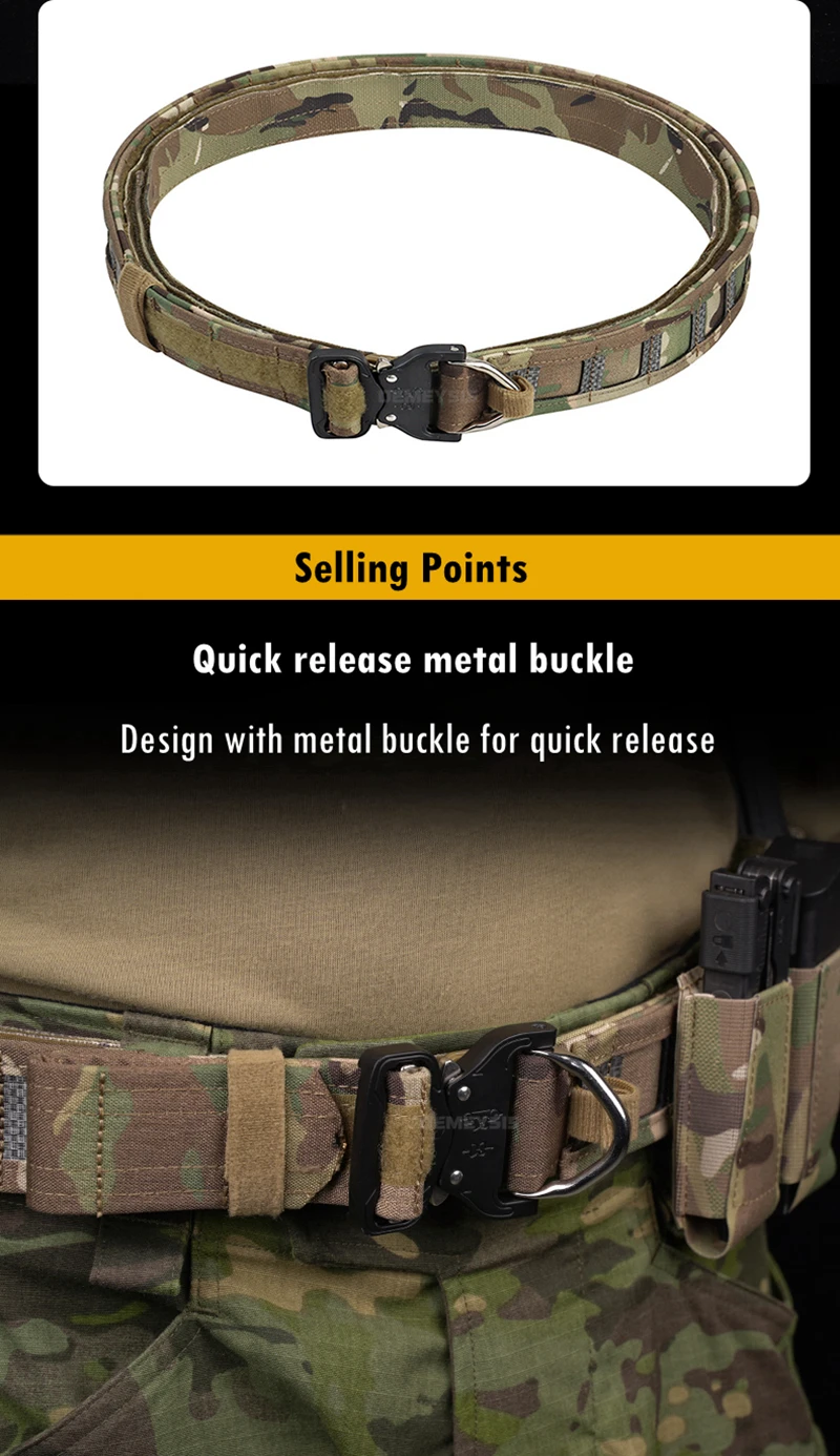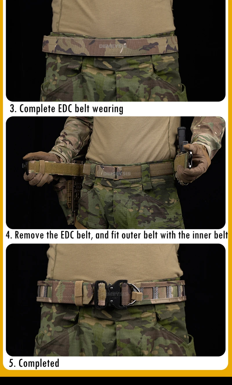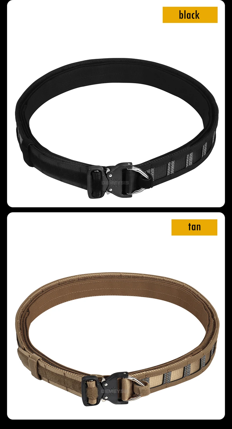 ● La construcción de carga resistente del cinturón MOLLE le permite colocar cómodamente municiones adicionales, bolsas de almacenamiento, paquetes médicos, equipo táctico y cualquier otra cosa que pueda necesitar. Se utiliza como cinturón de batalla, cinturón de patrulla, cinturón de servicio o cinturón diario.