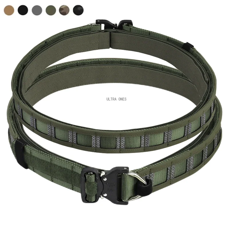 ● La construcción de carga resistente del cinturón MOLLE le permite colocar cómodamente municiones adicionales, bolsas de almacenamiento, paquetes médicos, equipo táctico y cualquier otra cosa que pueda necesitar. Se utiliza como cinturón de batalla, cinturón de patrulla, cinturón de servicio o cinturón diario.