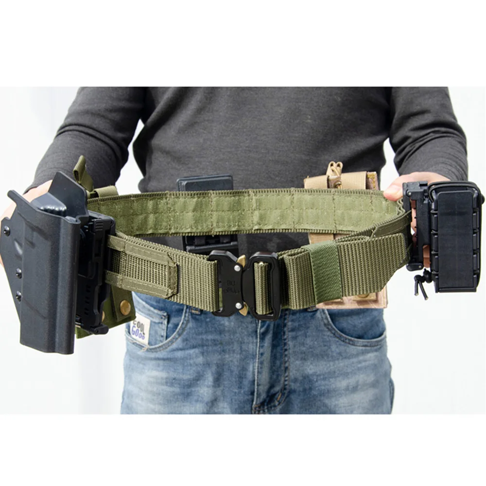 Cinturón táctico de 2 pulgadas, cinturón de combate para entrenamiento, caza Airsoft, deporte al aire libre, cinturón para hombre BK verde