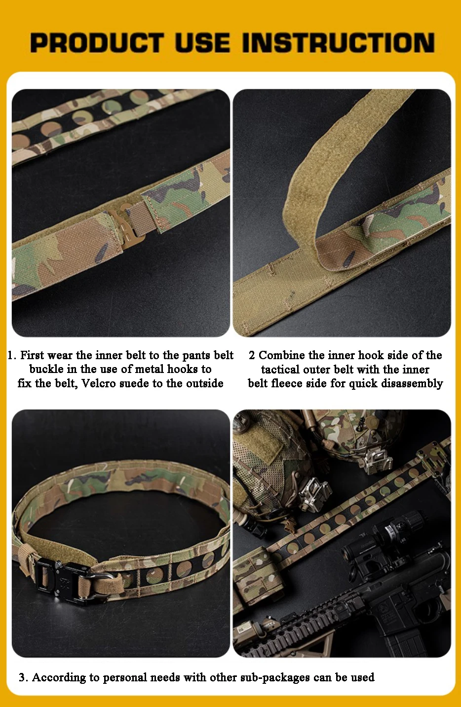 ➤ El cinturón táctico está hecho de tela mate liviana y súper resistente/tela Cordura + hebilla de metal.