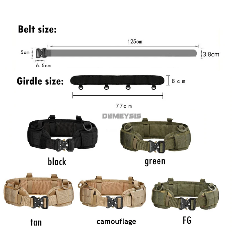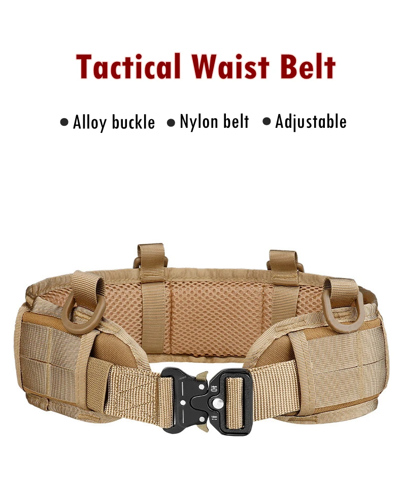 ●Cinturón de batalla tácticoHecho de nailon de alta calidad, alta resistencia y duradero, diseño con hebilla de aleación de zinc de liberación rápida.