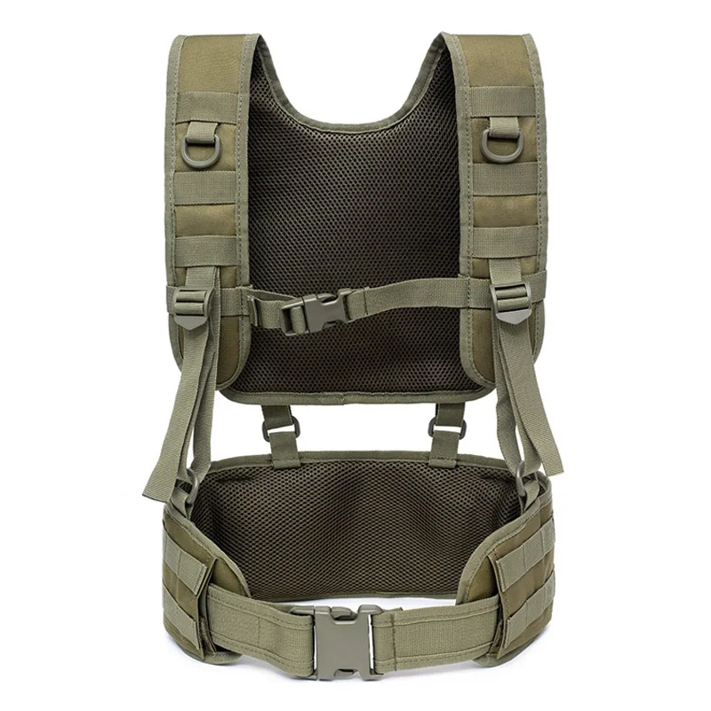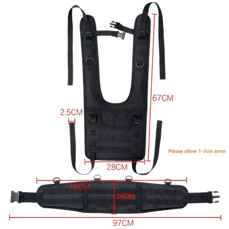 · Arnés de hombro de contorno con tres filas de correas en la espalda.Compatible con MOLLE/PALS