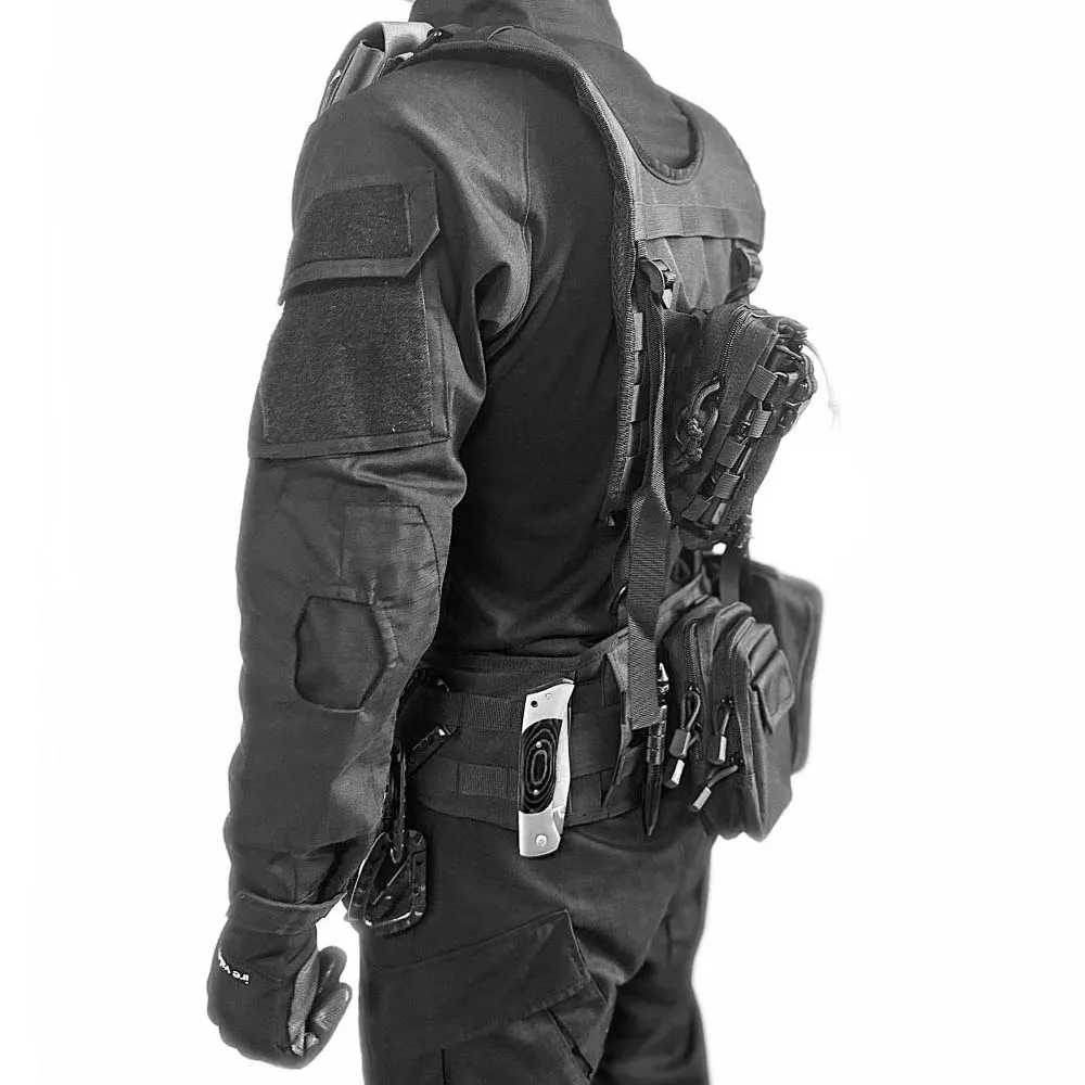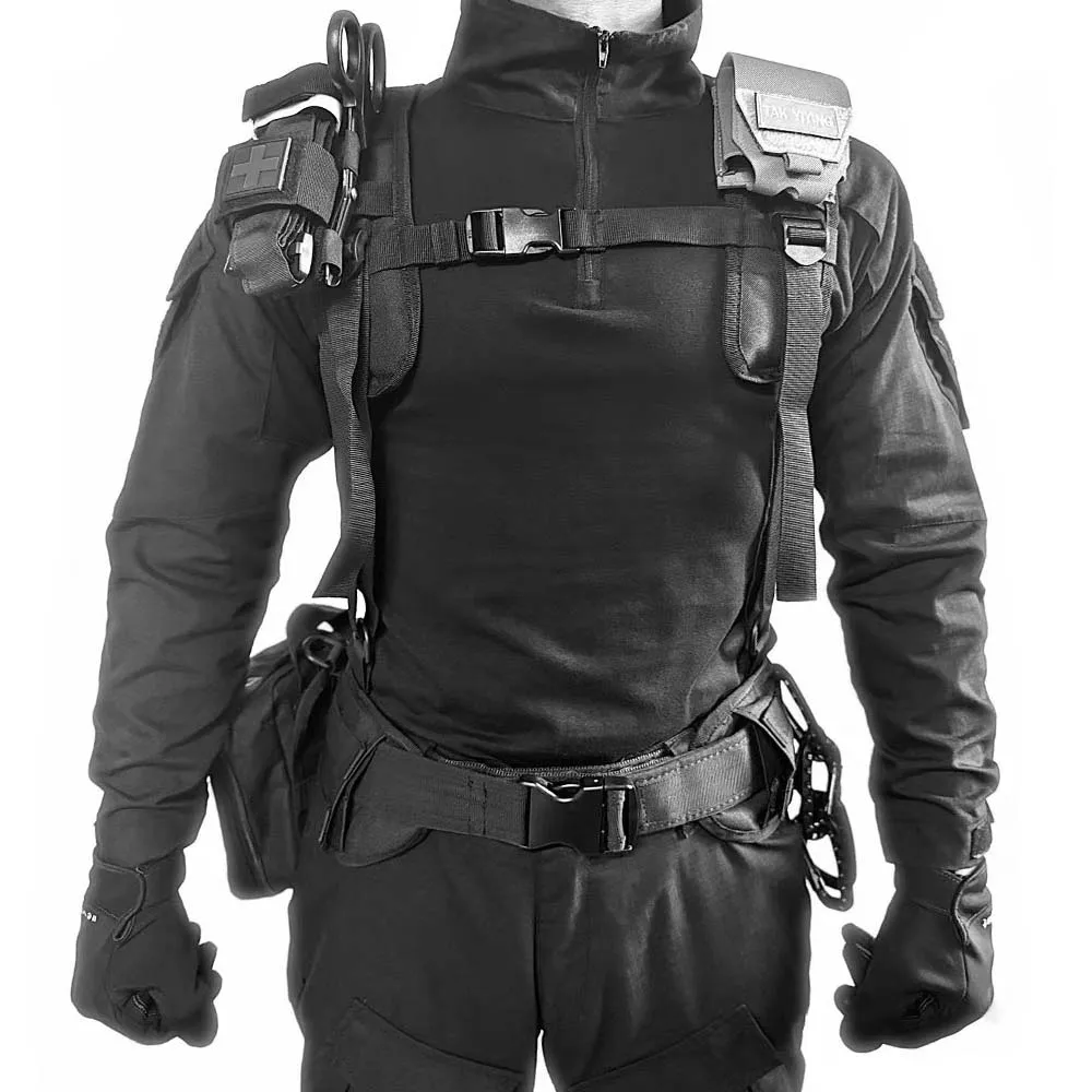 Cinturón táctico con correa para el pecho, correas para los hombros, cinturón en H, equipo multifuncional ligero y transpirable para exteriores, chaleco de pesca