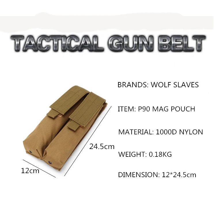 Bolsa de munición de rifle táctico P90 Unisex, bolsa de revista de pistola doble, bolsa MOLLE, accesorios de caza militar caze