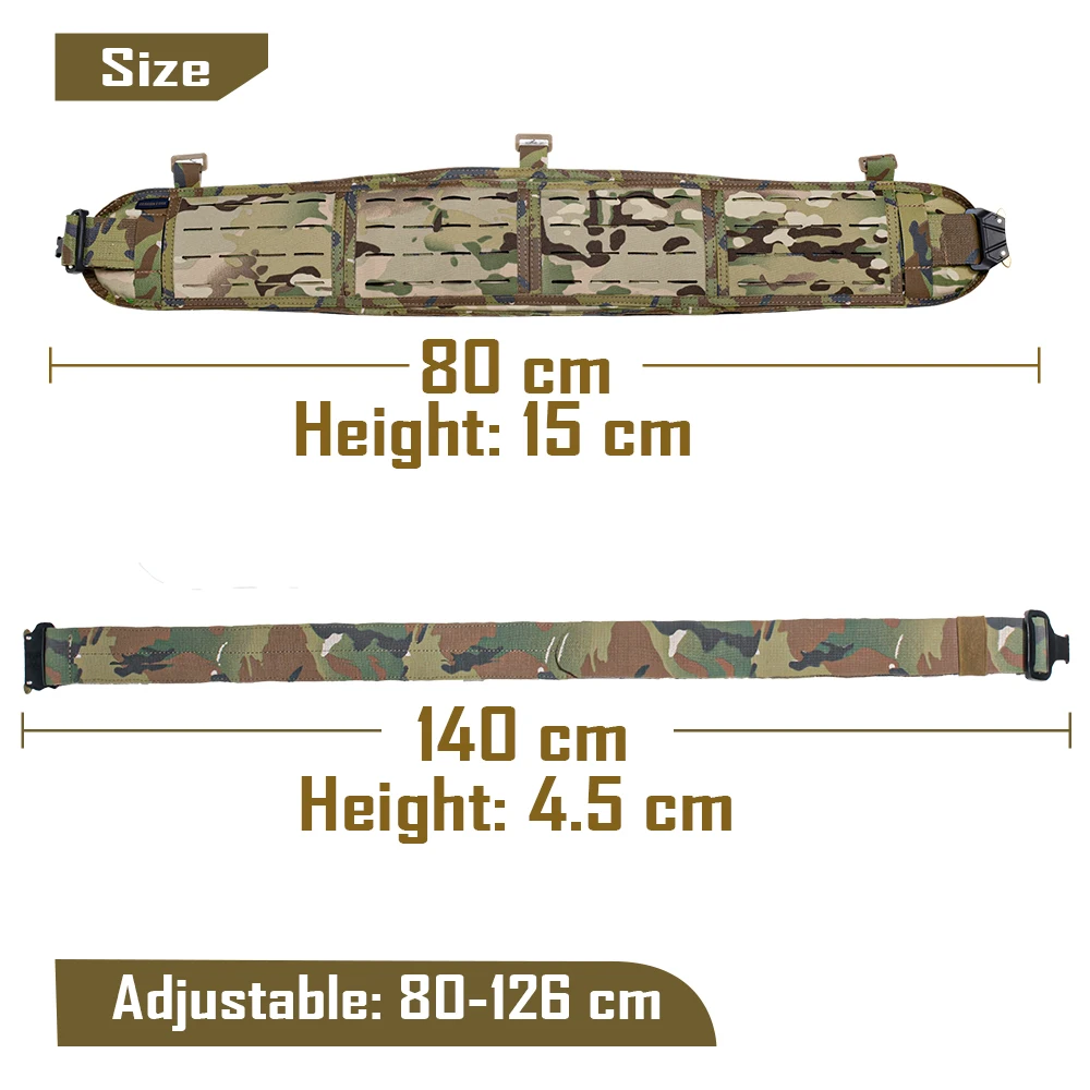 Tamaño ajustable, el cinturón es perfecto para todo tipo de cuerpo. Las almohadillas extraíbles permiten una personalización adicional, asegurando un ajuste cómodo y cómodo. Úselo para una variedad de actividades, como airsoft, caza y entrenamiento militar.
