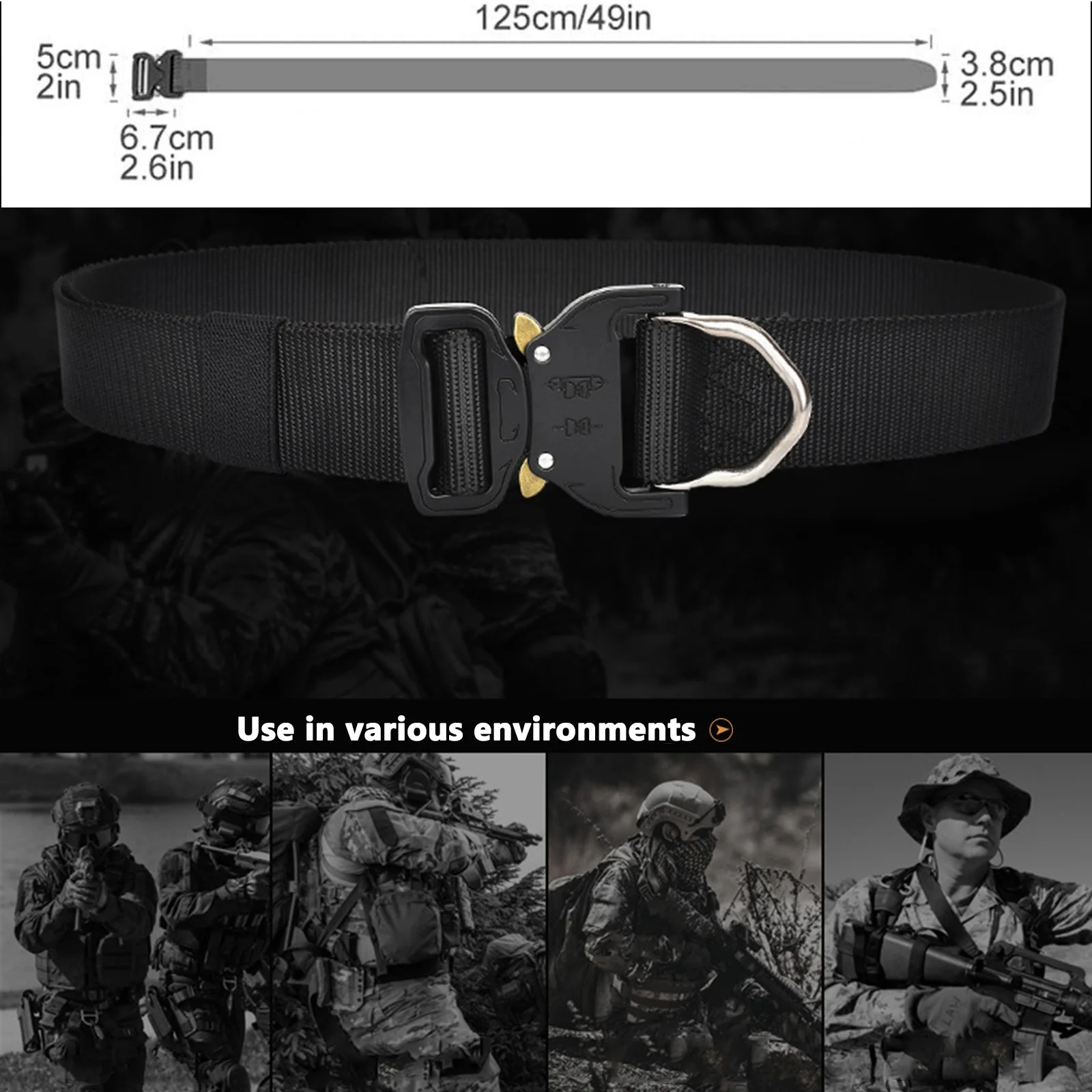 ▶Tamaño ajustable, táctico longitud del cinturón: 49 pulgadas (125cm), ancho: 1,5 pulgadas (3,8 cm), apto para cintura de hasta 46 pulgadas. Que es lo suficientemente elástico para su tamaño. Puede obtener el ajuste perfecto al cambio de estatura.