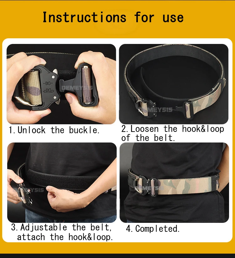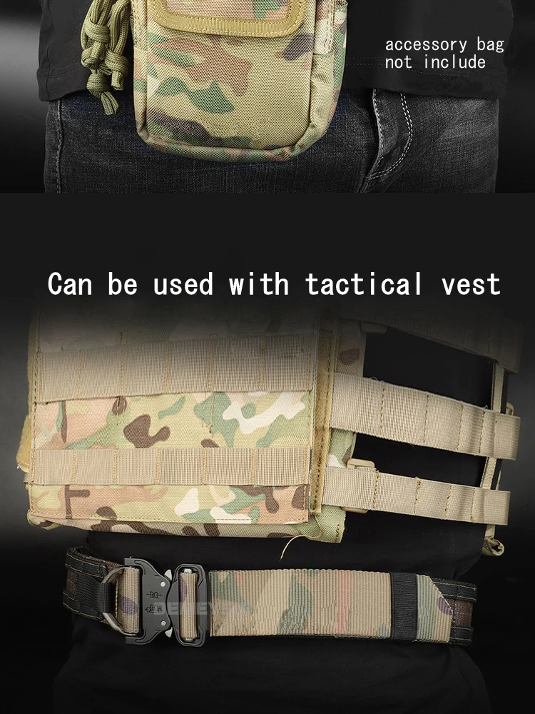 ● El cinturón táctico Molle está hecho de material de nailon de alta calidad con panel de gancho y bucle para fijar, fácil de poner y quitar.
