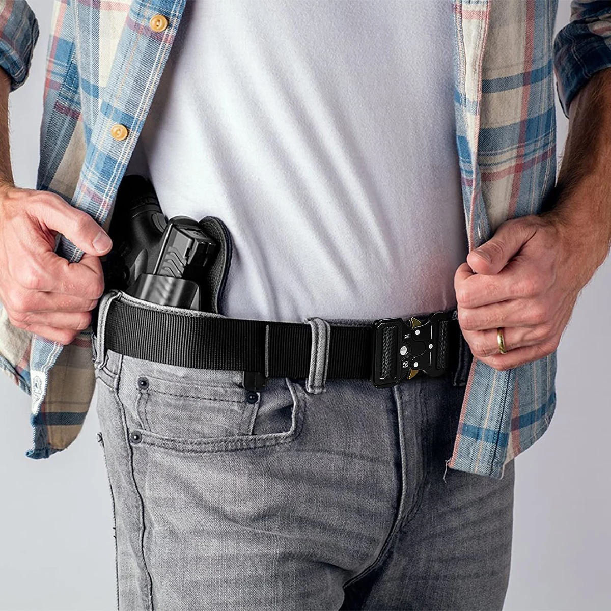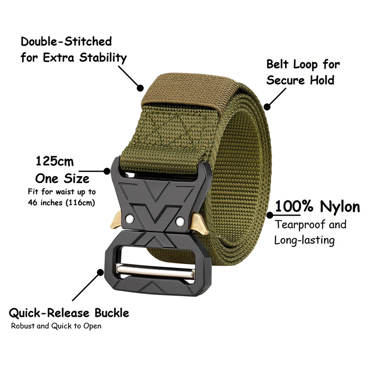 ➤ Longitud del cinturón táctico 125cm ajustable para cintura 28-42, ancho 1,5 pulgadas (3,8 cm), cinturón táctico de liberación rápida, elegante y duradero.