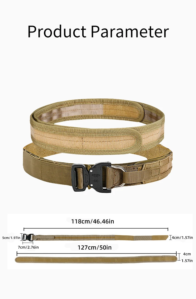 -Perfecto para juegos de guerra, trabajo, caza y otras actividades al aire libre. Tamaño ajustable con gancho y lazo para asegurar el cinturón interior. Hebilla de cinturón de metal de alta calidad. El paquete incluye un cinturón interior negro y un cinturón MOLLE con hebilla exterior. El cinturón exterior se puede utilizar para sujetar otros equipos.