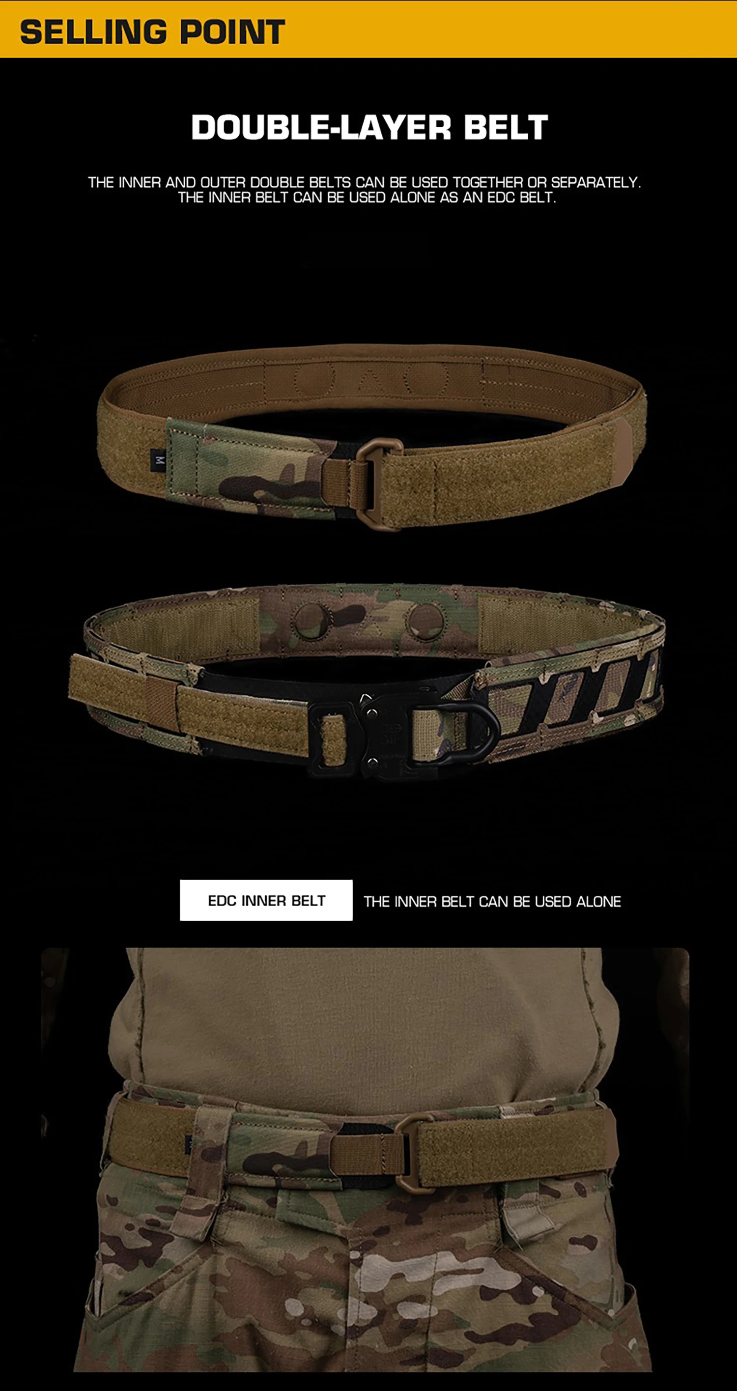 🔹 Versatilidad de doble capa: use ambos cinturones para operaciones tácticas completas o use el cinturón interior solo para comodidad de transporte diario.