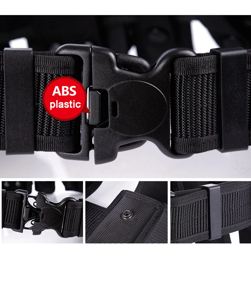 Paquete incluido : Cinturón tributético x1 1 bolsa para esposas. 1 bolsa para linterna. Paquete de balas x1 Bolsa de notas x1 Funda para pistola x1 Bolsa para walkie-talkie x1 Paquete de daga x1 Bolsa de agua x1