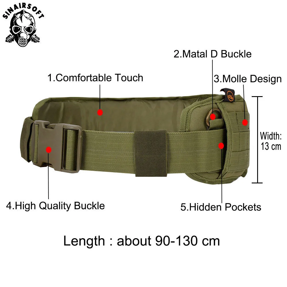 Cinturón táctico militar Molle para exteriores, equipo multiusos acolchado CS, cinturones anchos para Airsoft, equipo de protección de seguridad para deportes de caza