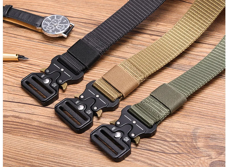 Cinturón multifuncional para acampar y montañismo al aire libre para hombres, cinturón táctico militar, cinturón tejido de lona de nailon, 1 pieza