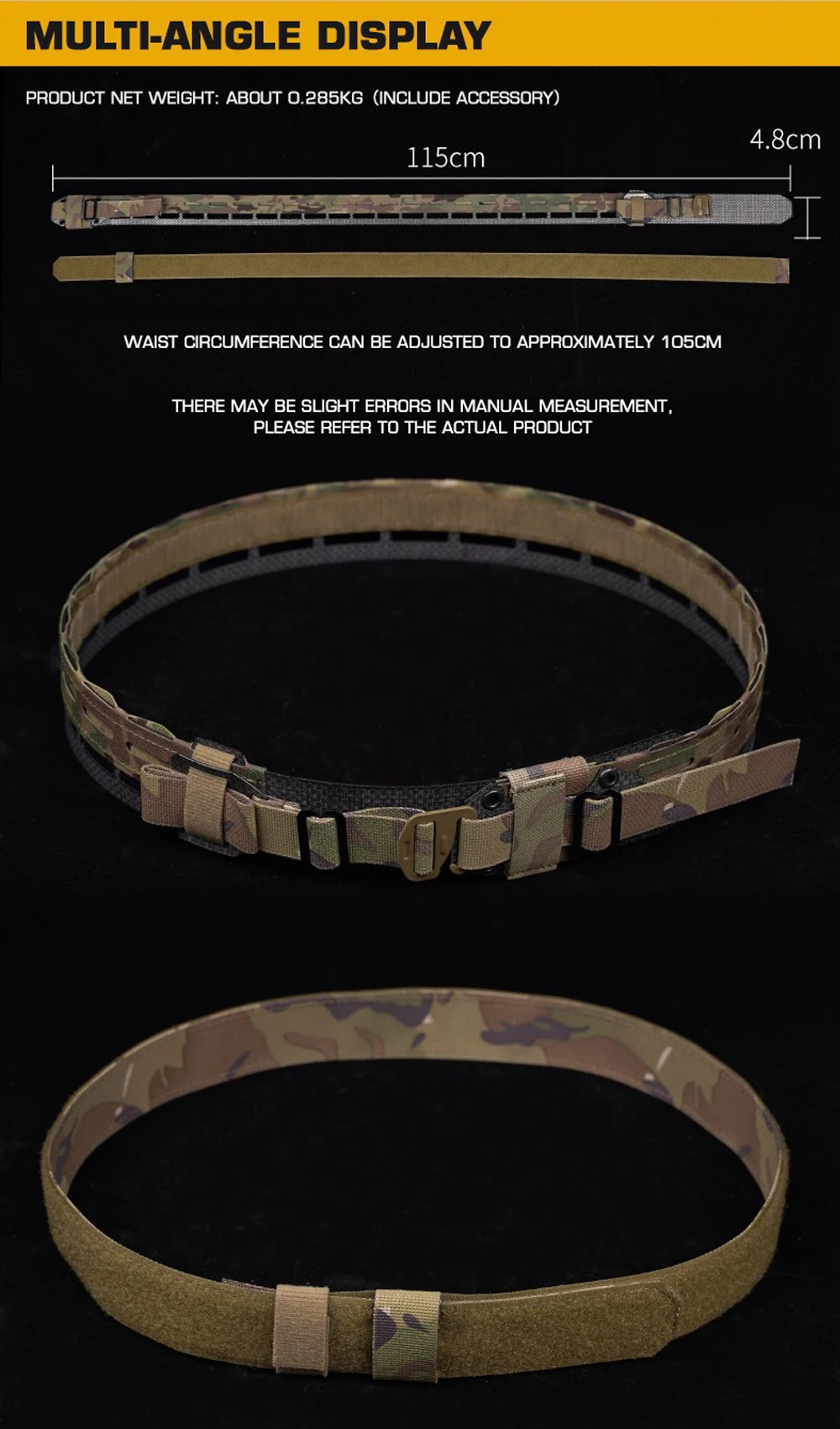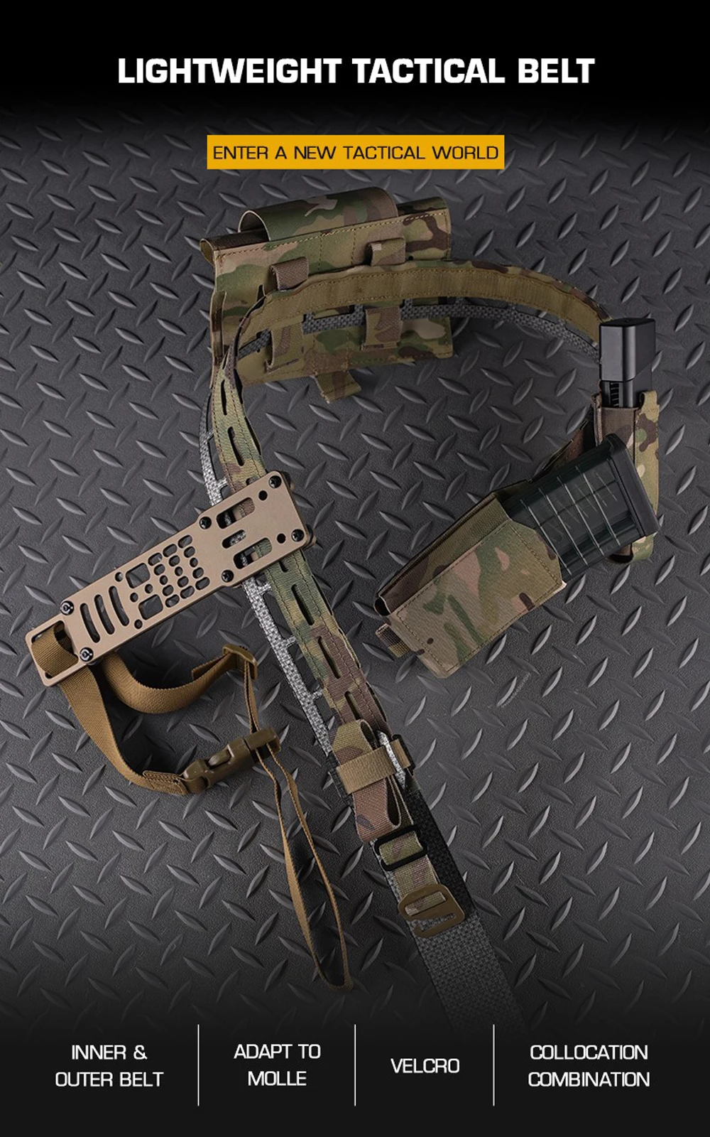 Cinturón táctico Molle 2 en 1, cinturón ligero para entrenamiento de caza y batalla, hebilla de liberación rápida, equipo de cinturón para tiro Airsoft para hombre