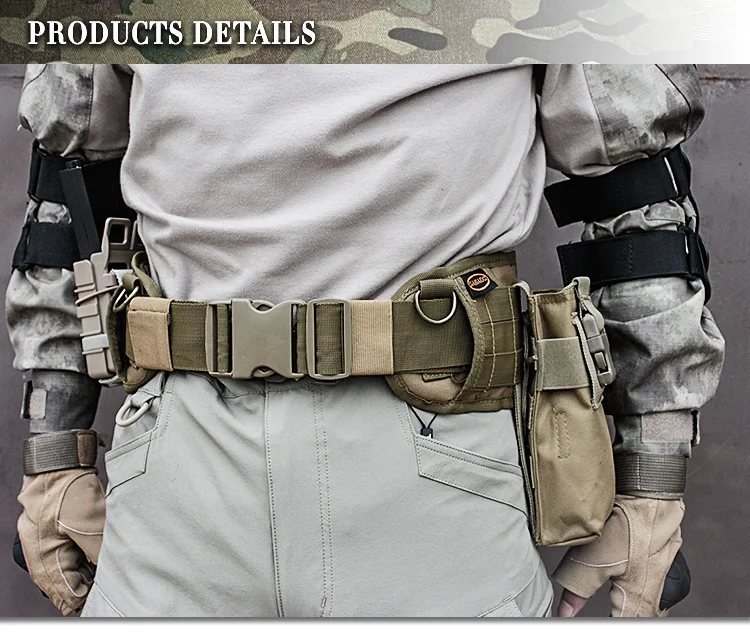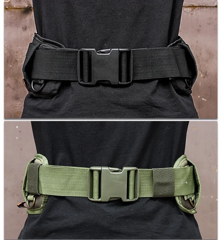 -Material: nylon 1000D WR de alta densidad con excelente resistencia a la tracción y gran capacidad de carga. Puede cargar accesorios tácticos y bolsas fácilmente. Las hebillas resistentes al medio ambiente hacen que el cinturón sea más duradero.