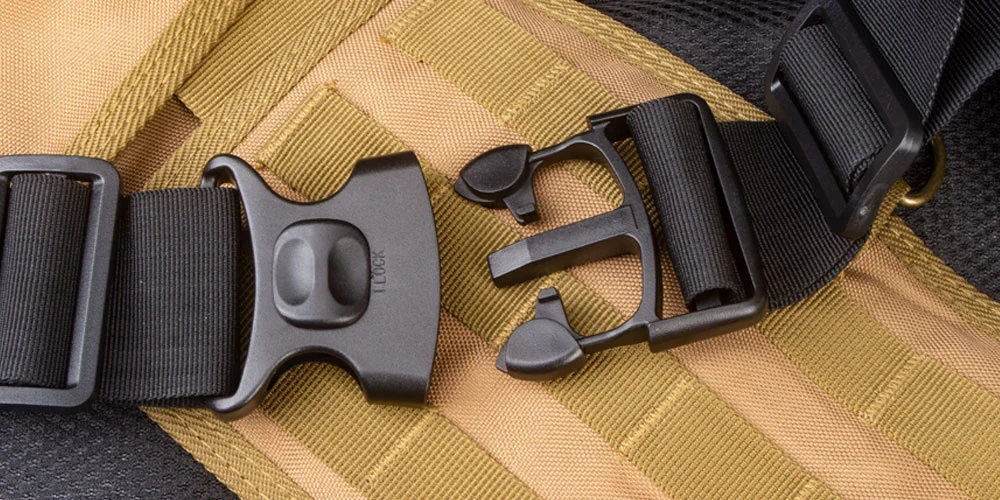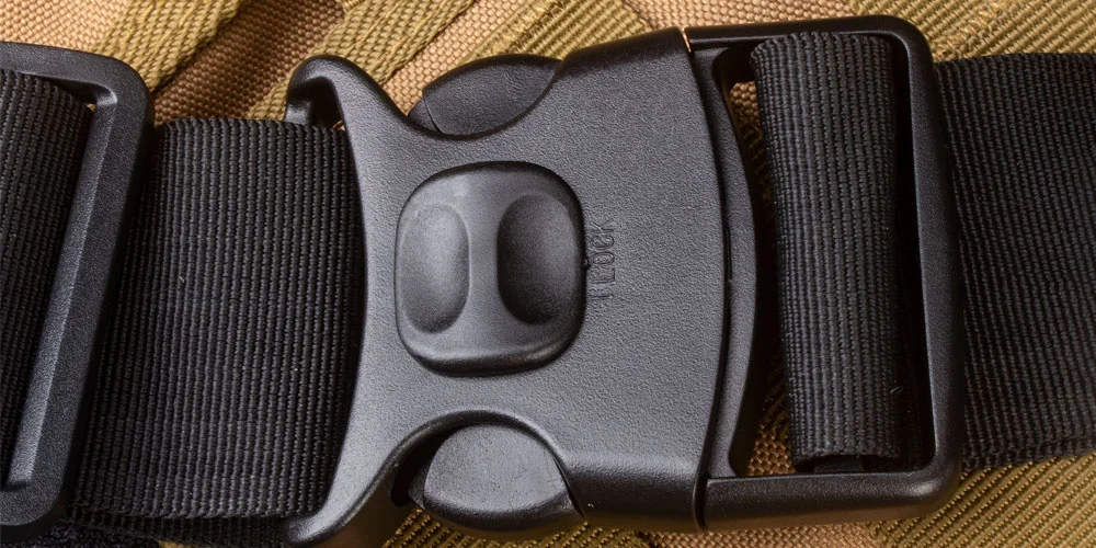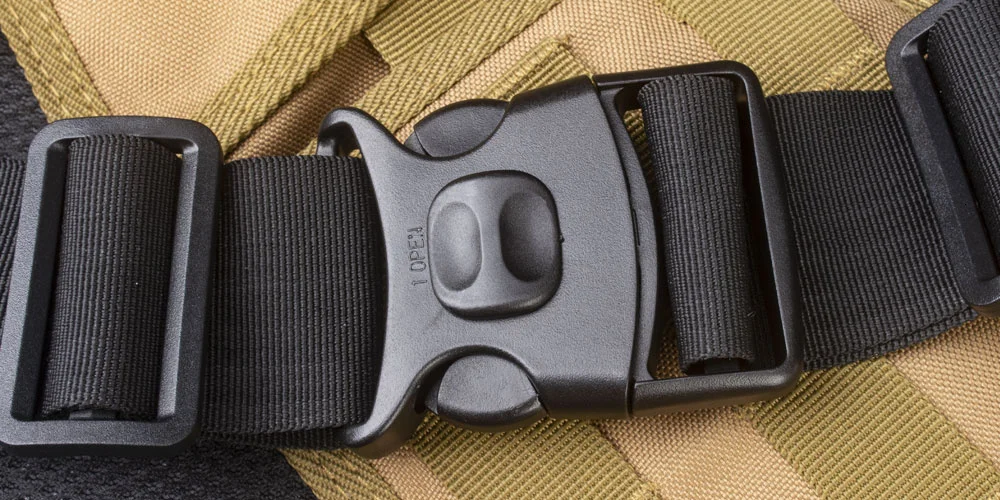 Hebilla de liberación rápida para un fácil acceso. Cinturón compatible con MOLLE para bolsas y engranajes adicionales.
