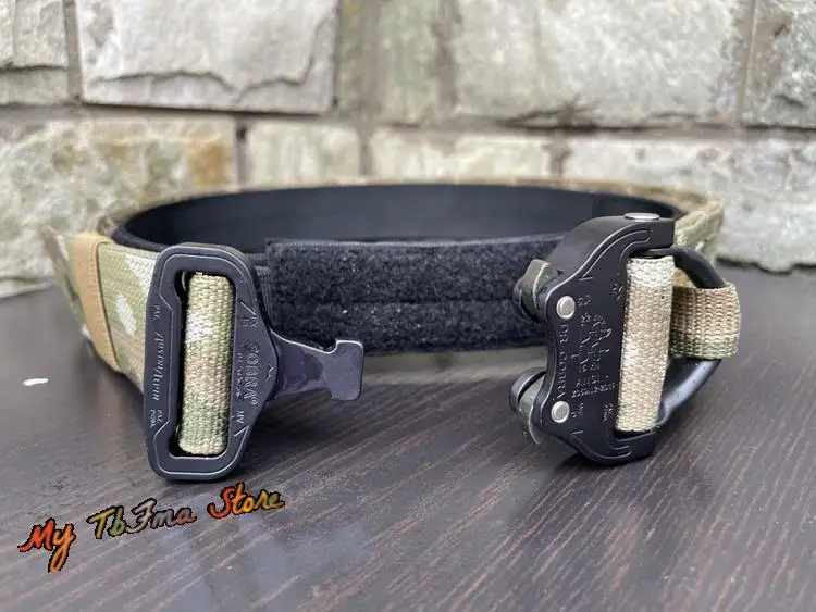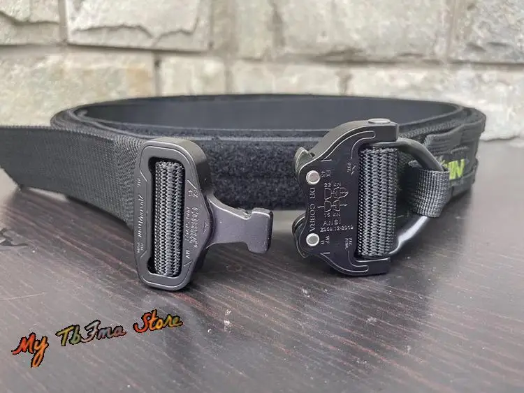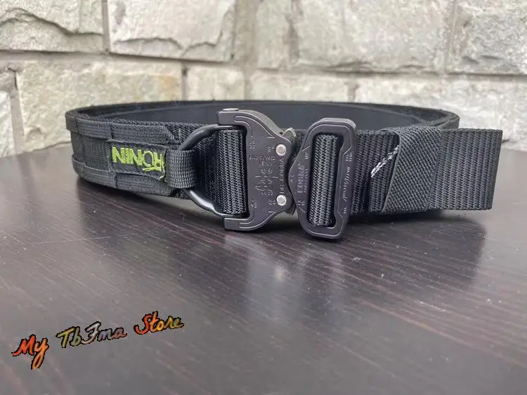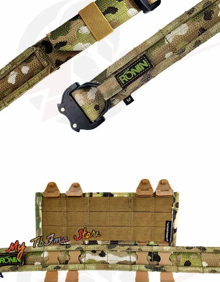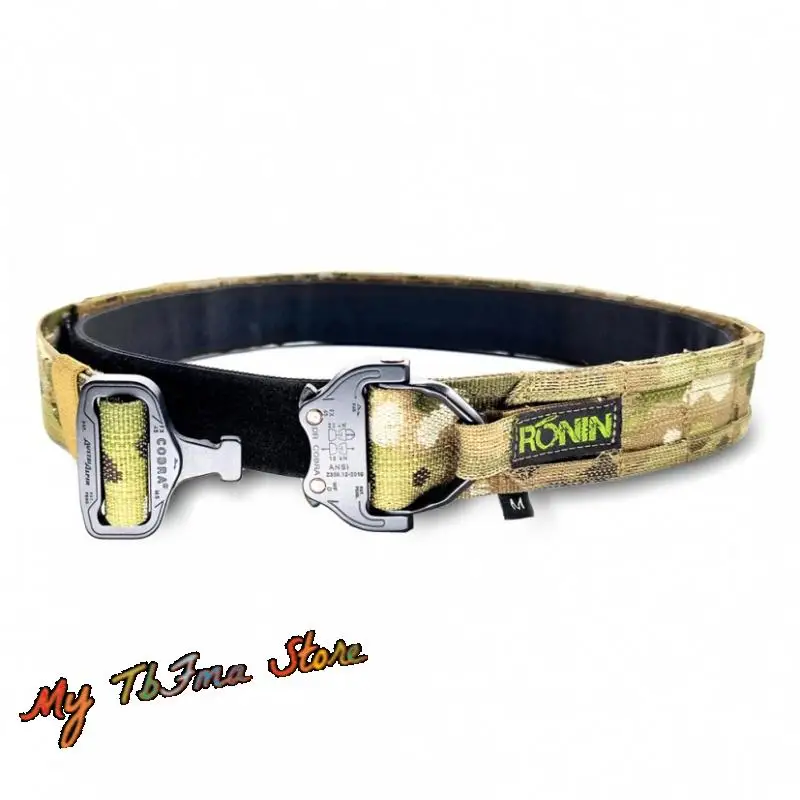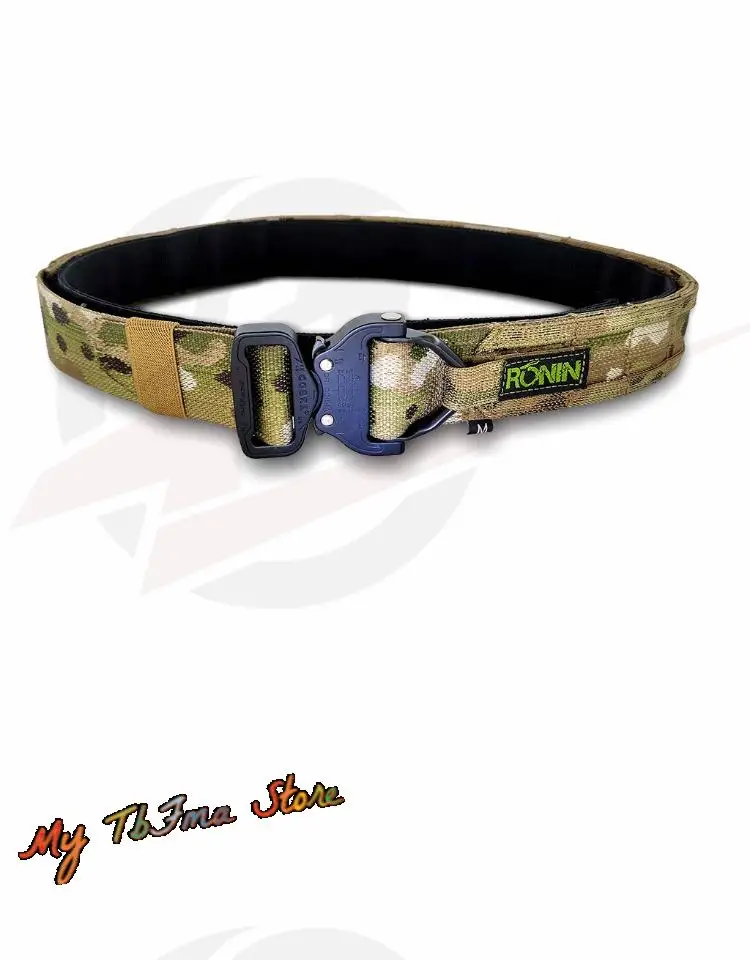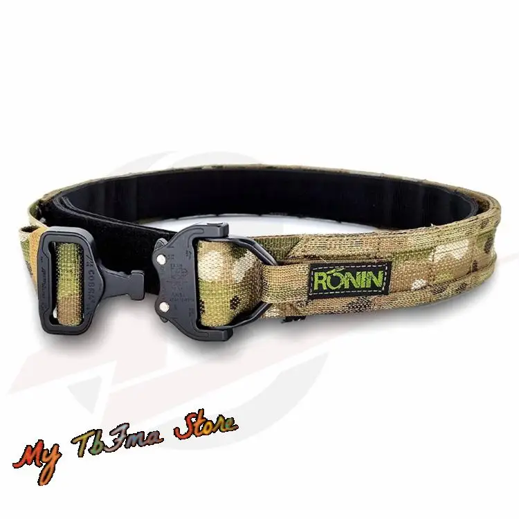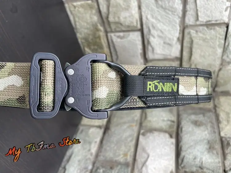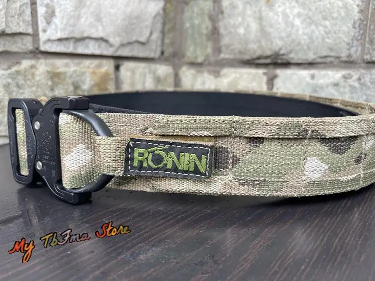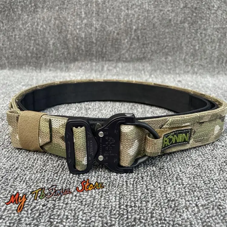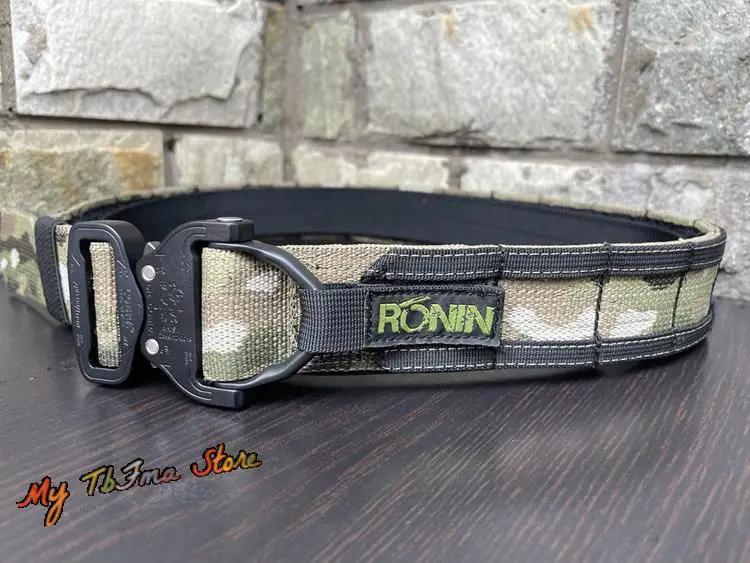 Cinturón táctico MOLLE de 1,75 pulgadas/4,5 cm, cinturón de 2 capas estilo Ronin con hebilla de doble anillo de liberación rápida