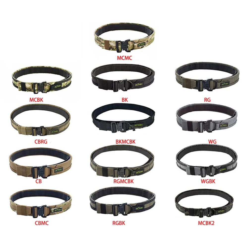 Cinturón táctico Molle estilo Ronin, cinturón de doble capa para caza al aire libre de 1,75 pulgadas, sistema Molle
