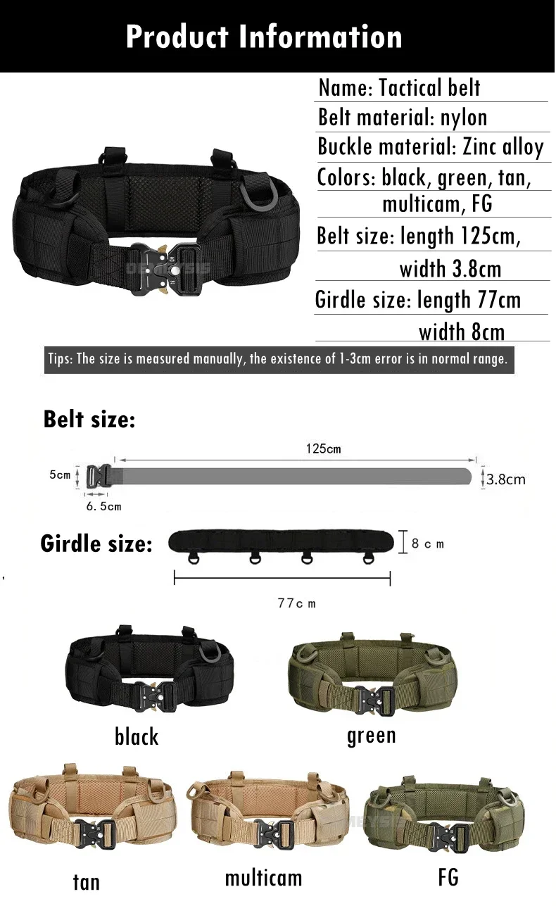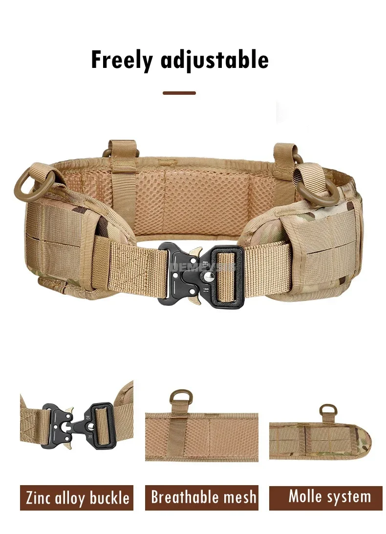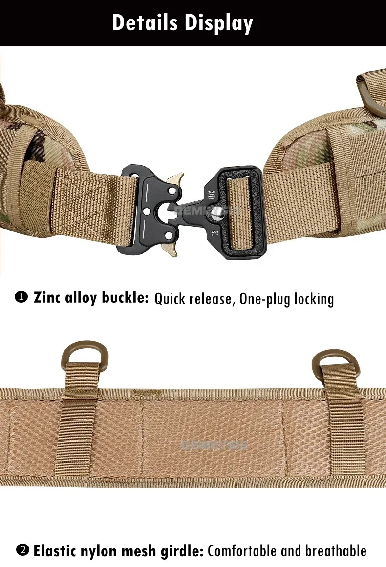 ●Cinturón de combate tácticoHecho de nailon de alta calidad, alta resistencia y duradero, diseño con hebilla de aleación de zinc de liberación rápida.