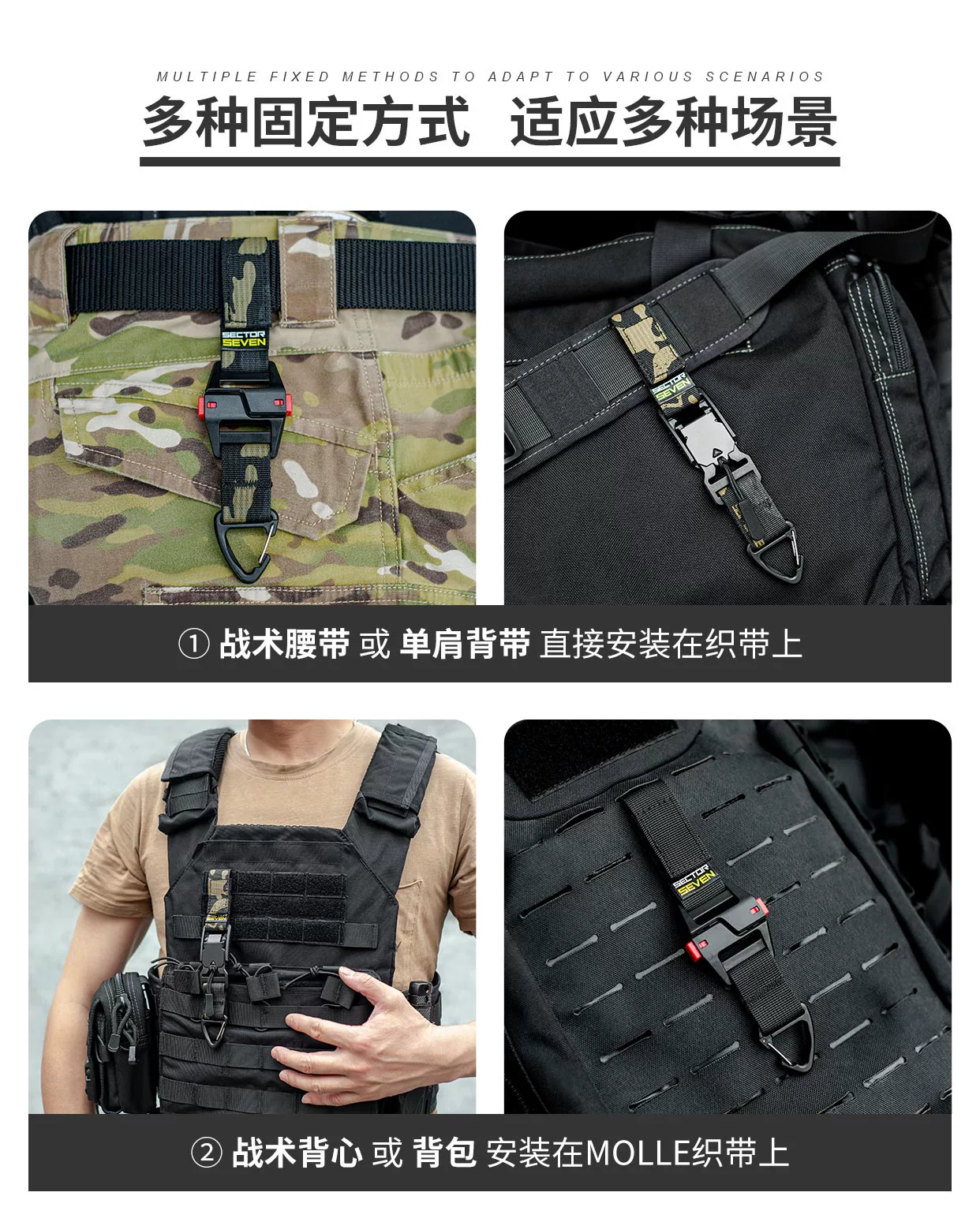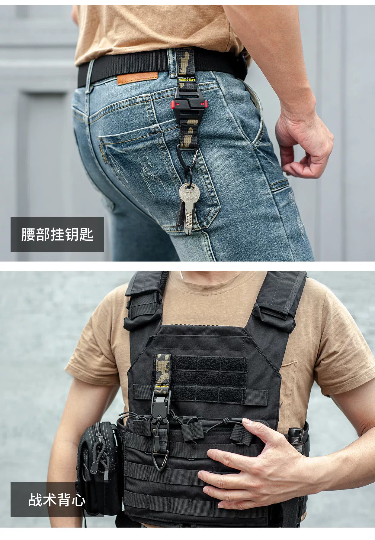 Cinturón táctico multiusos con hebilla desmontable, triángulo, colgante rápido, gancho de un solo punto, llavero de supervivencia EDC