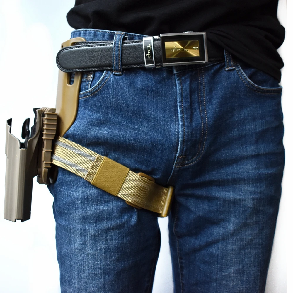 Cinturón táctico de nailon para pierna, correa de 4 piezas, hebilla fija elástica, anillo para cinturón ancho de 1,5 pulgadas