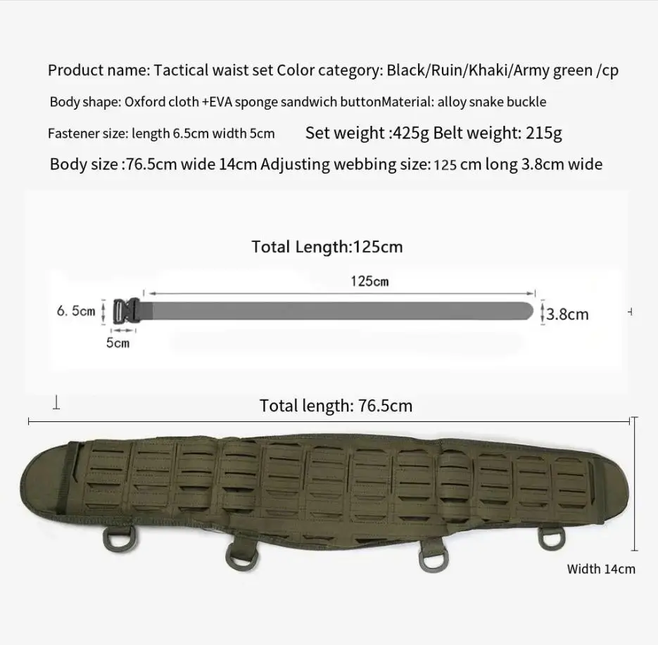 Cinturón táctico personalizado informal para exteriores, cubierta de cintura táctica multifuncional, conjunto completo de cinturón de camuflaje ligero