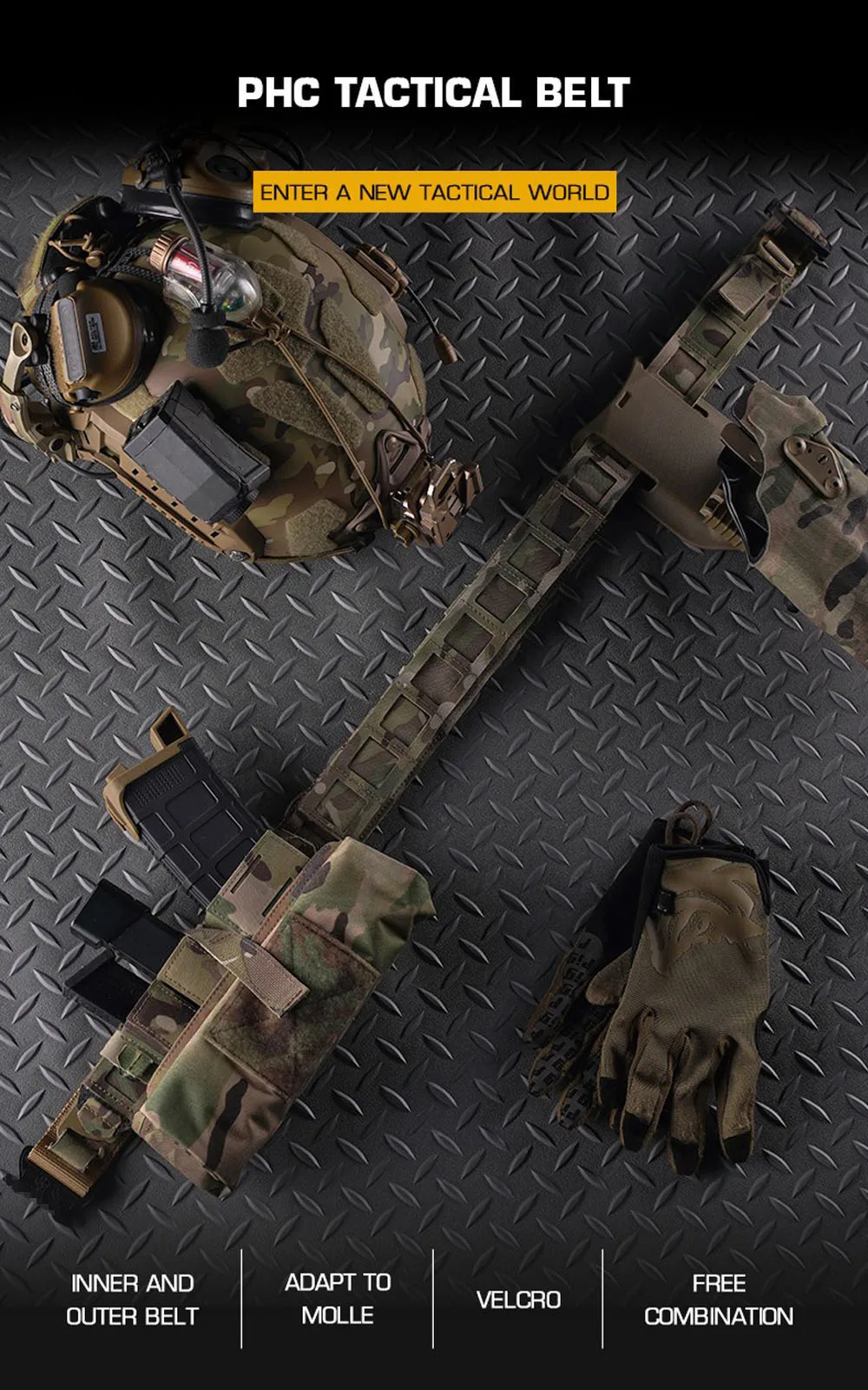 Cinturón táctico PHC caza deporte combate entrenamiento Molle cinturón de doble uso liberación rápida juego de guerra Paintball Airsoft Gear EDC hombres cinturón