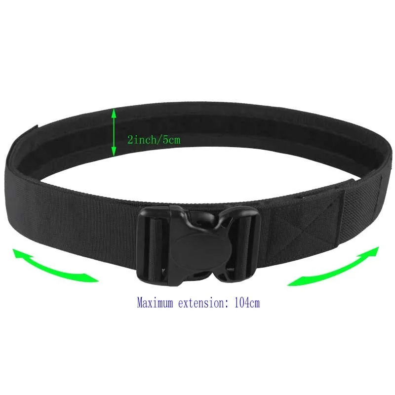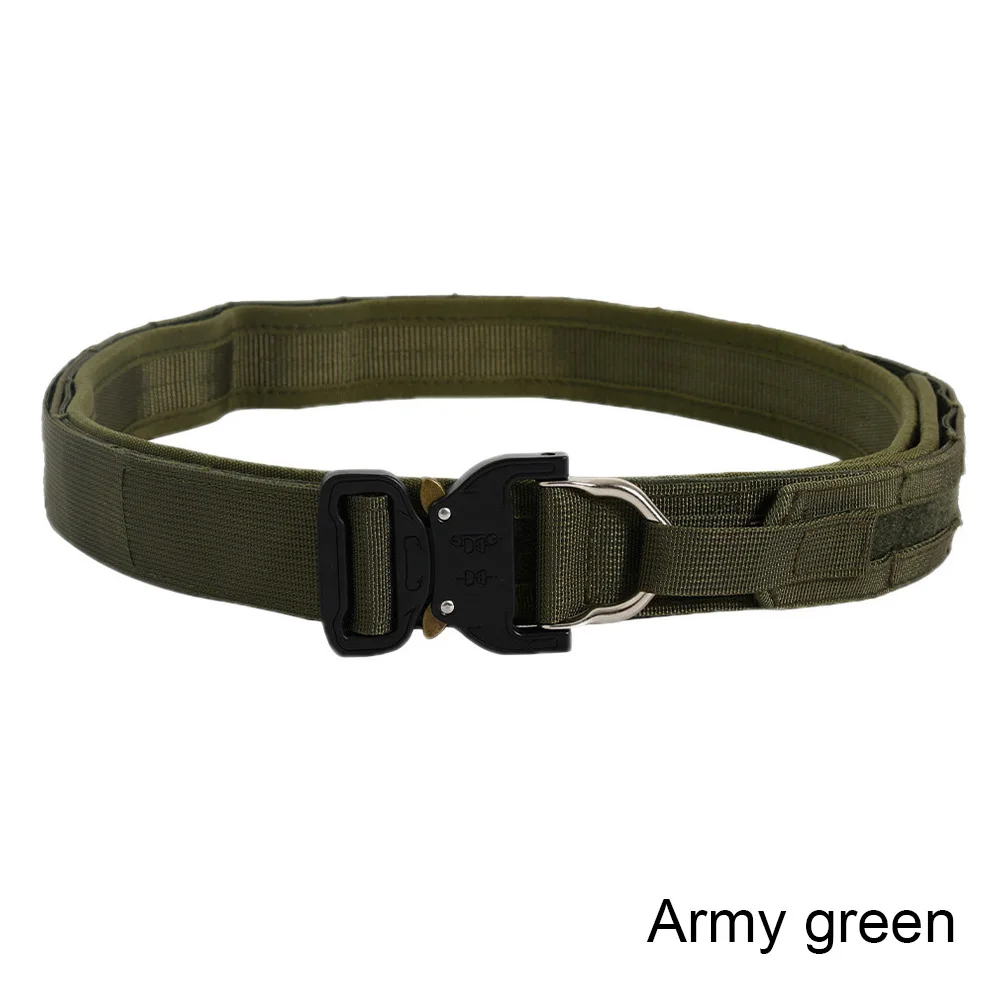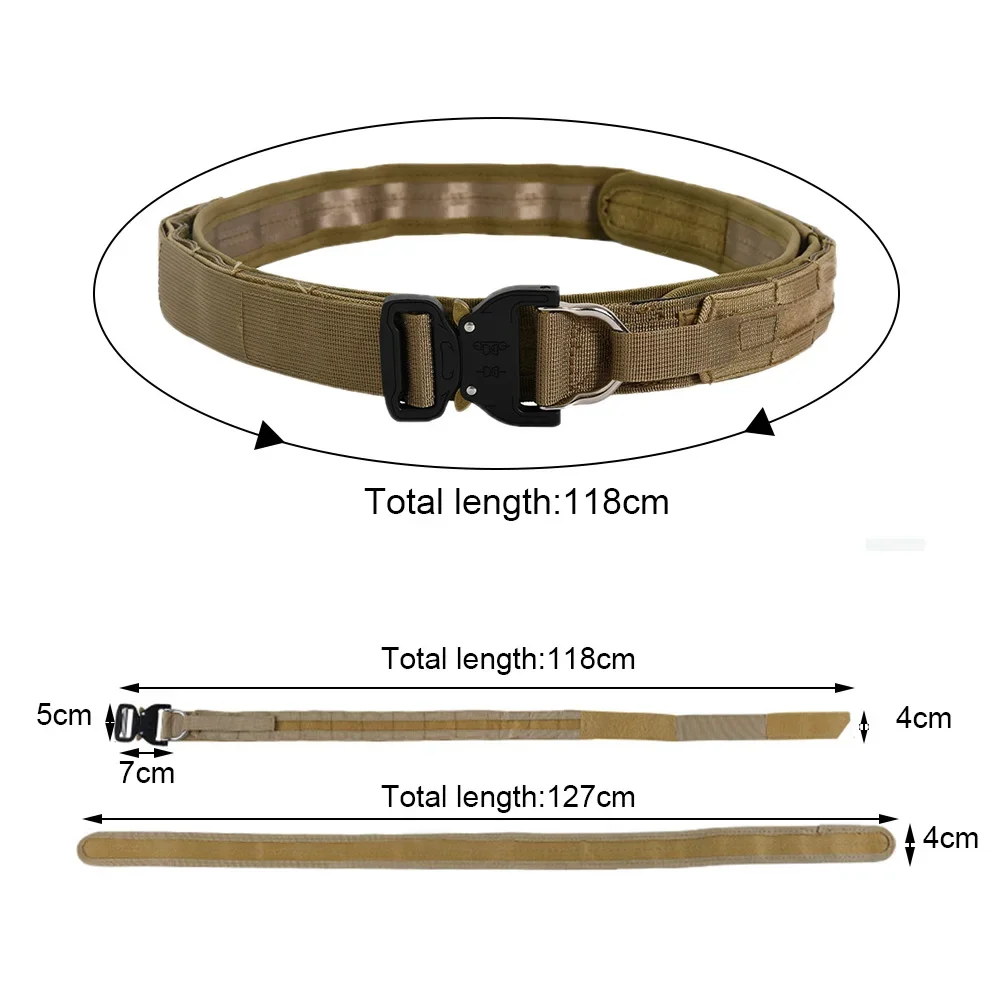 Viene con un cinturón de doble capa, incluido un cinturón interior y un cinturón molle con hebilla exterior, exterior con cinturón molle para conectar otros engranajes.