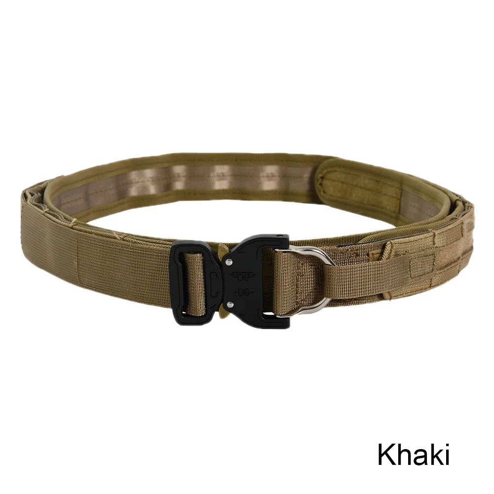 Viene con un cinturón de doble capa, incluye un cinturón interior y un cinturón molle de hebilla exterior, exterior con cinturón molle para conectar otros engranajes.