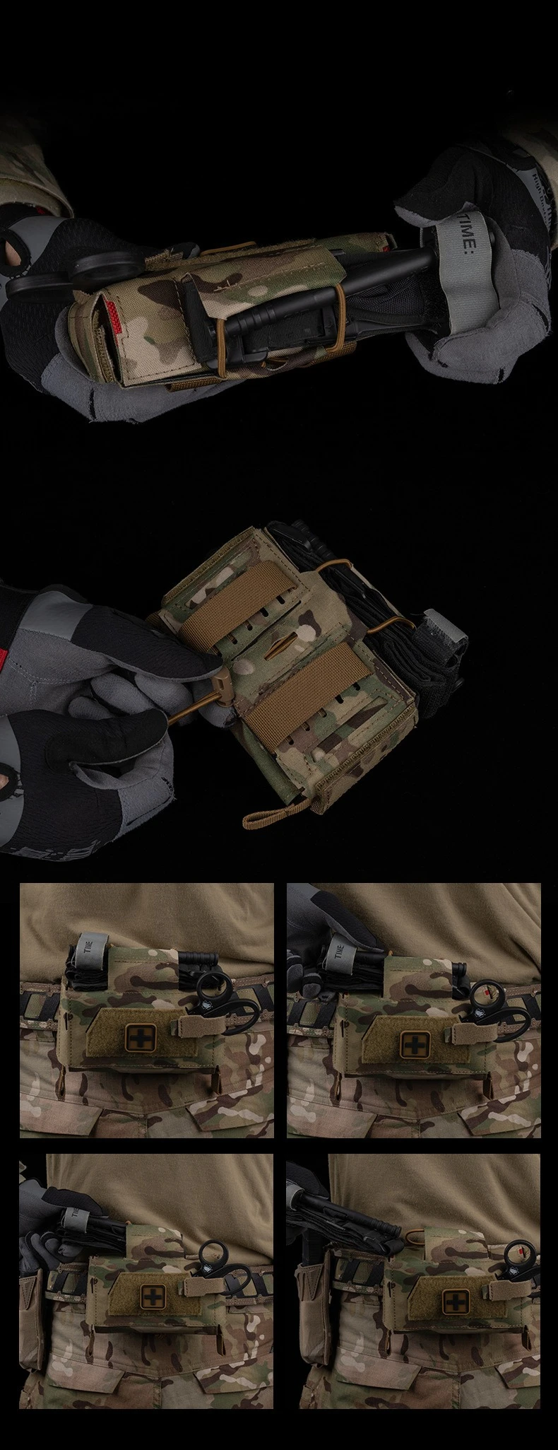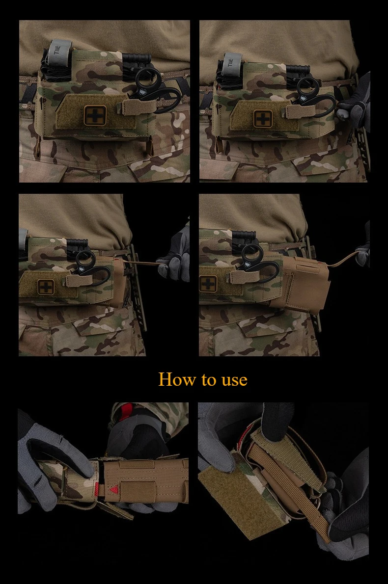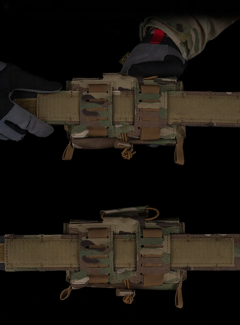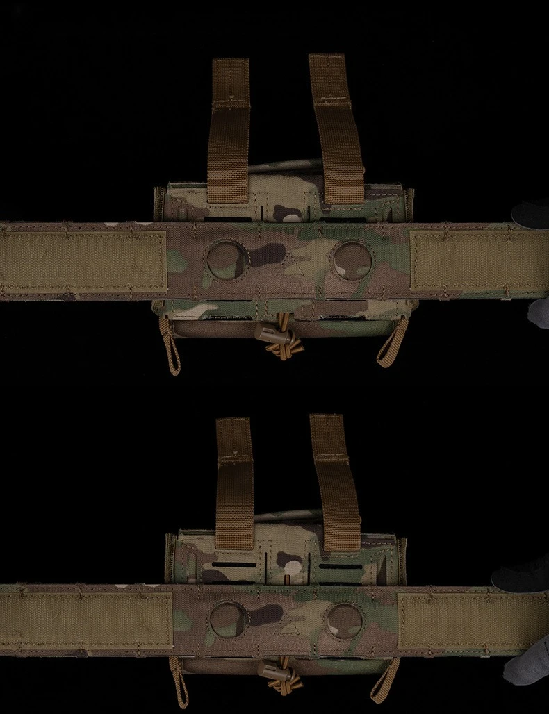 Dos formas de sujetar al cinturón táctico, se fija a través del orificio del cinturón y se adapta al cinturón táctico con un ancho inferior a 5 cm.