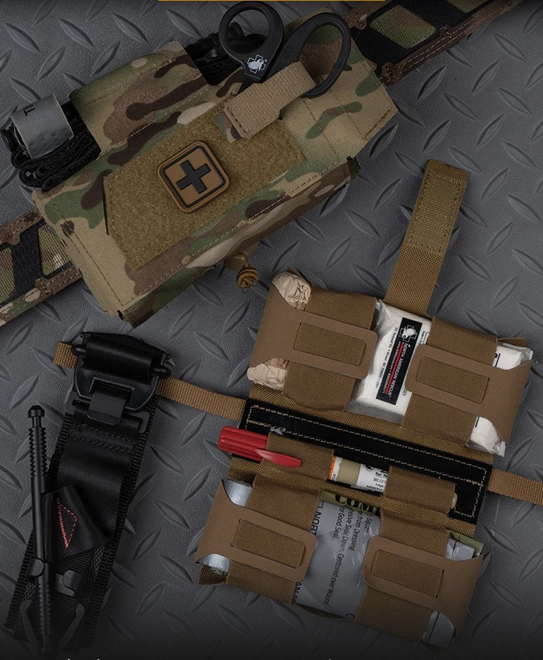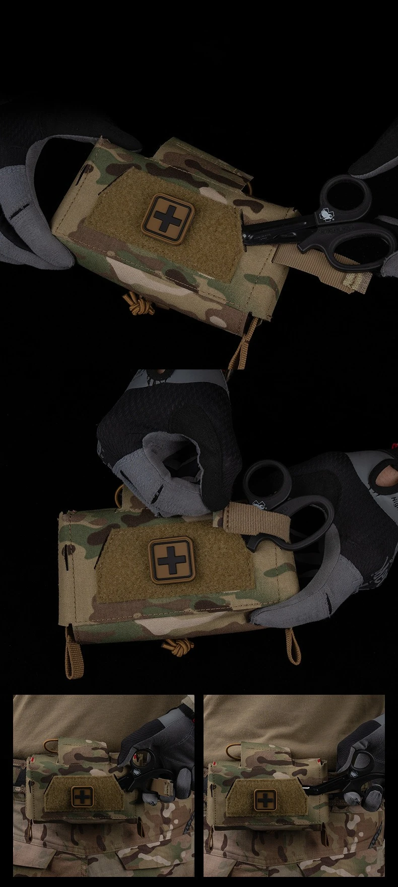 El frente puede almacenar tijeras médicas para más situaciones de emergencia.