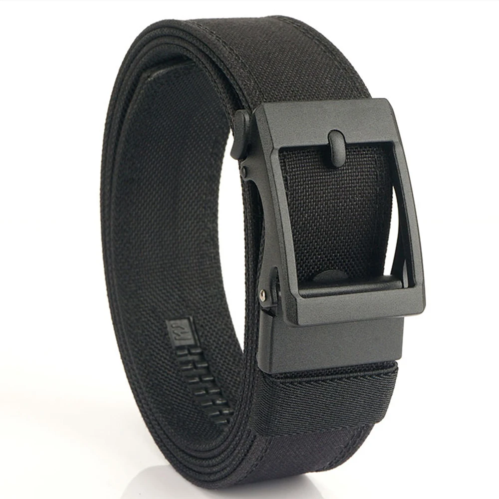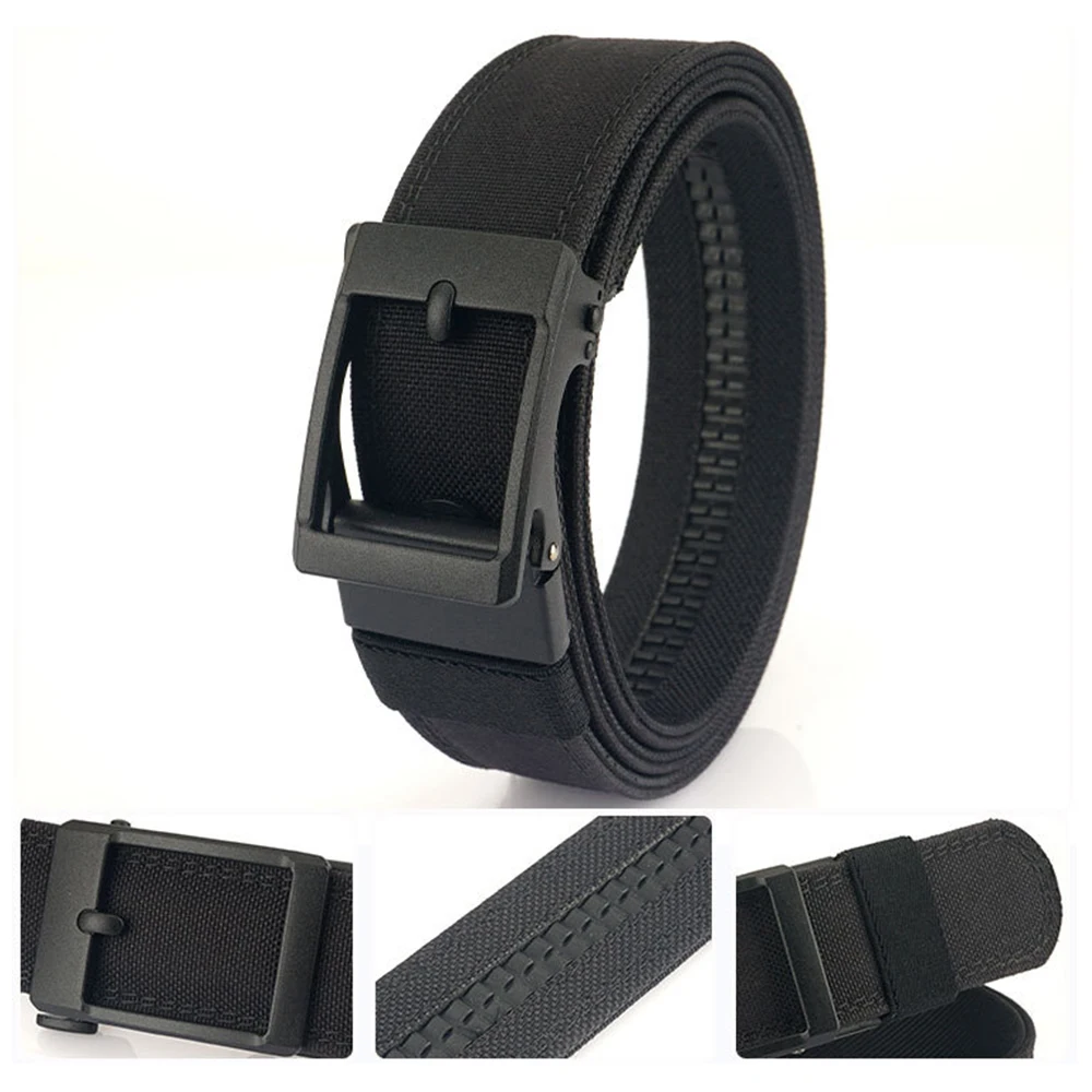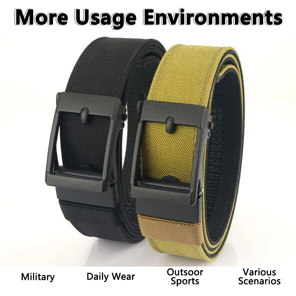 Cinturón táctico de tela de nailon de doble capa colgante de pistola dura y gruesa para hombres cinturón versátil con hebilla automática para exteriores para hombres