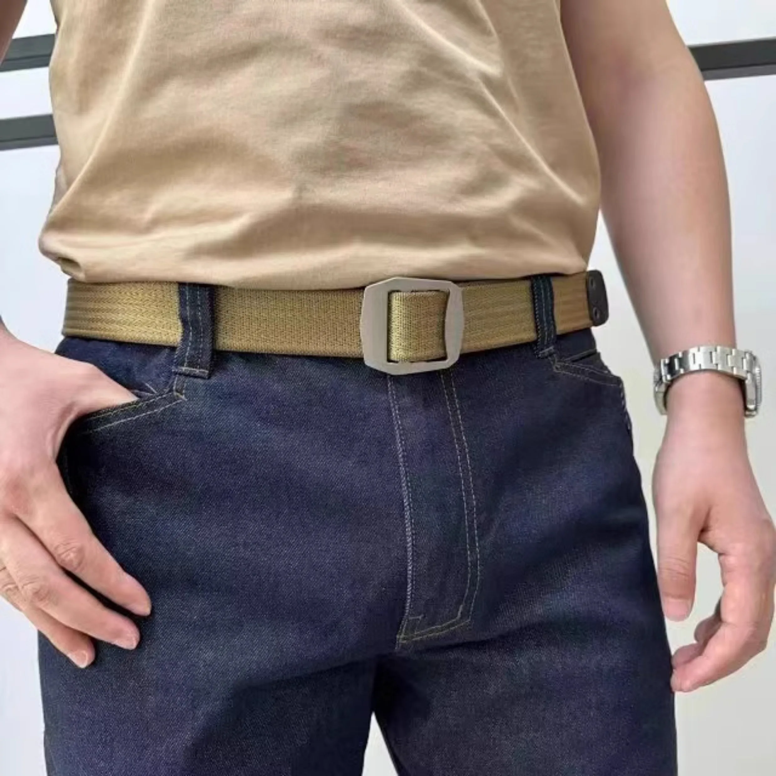 Cinturón táctico de titanio, cinturón de nailon elástico para hombre, cinturón tejido de lona para deportes al aire libre