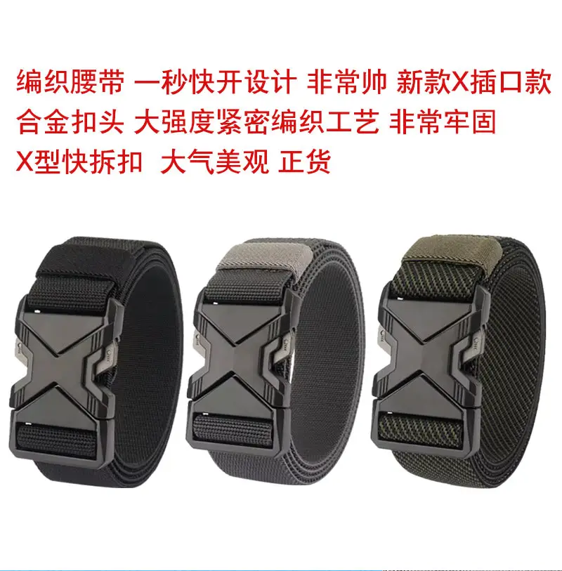 Cinturón trenzado de armadura de diamante para hombres, cinturón de mezclilla de entrenamiento, hebilla de apertura rápida de Metal, táctico al aire libre, informal, todo en uno