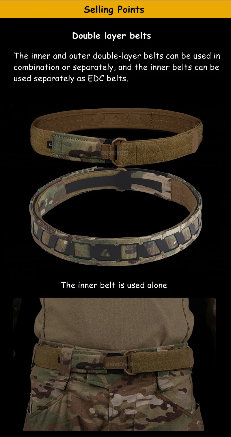 Diseño de doble capa - Úselo juntos o use el cinturón interior por separado como cinturón EDC