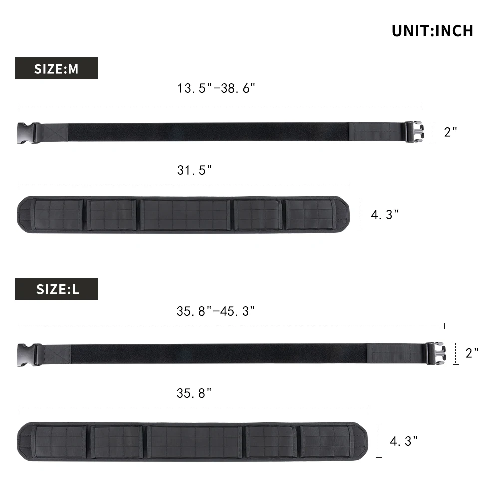 Cinturón de batalla táctico para colocar una bolsa de revistas extra útil, bolsa de primeros auxilios, bolsa para linterna, bolsa para botella de agua, bolsas de descarga o cualquier otro en el panel para extender su espacio de almacenamiento.