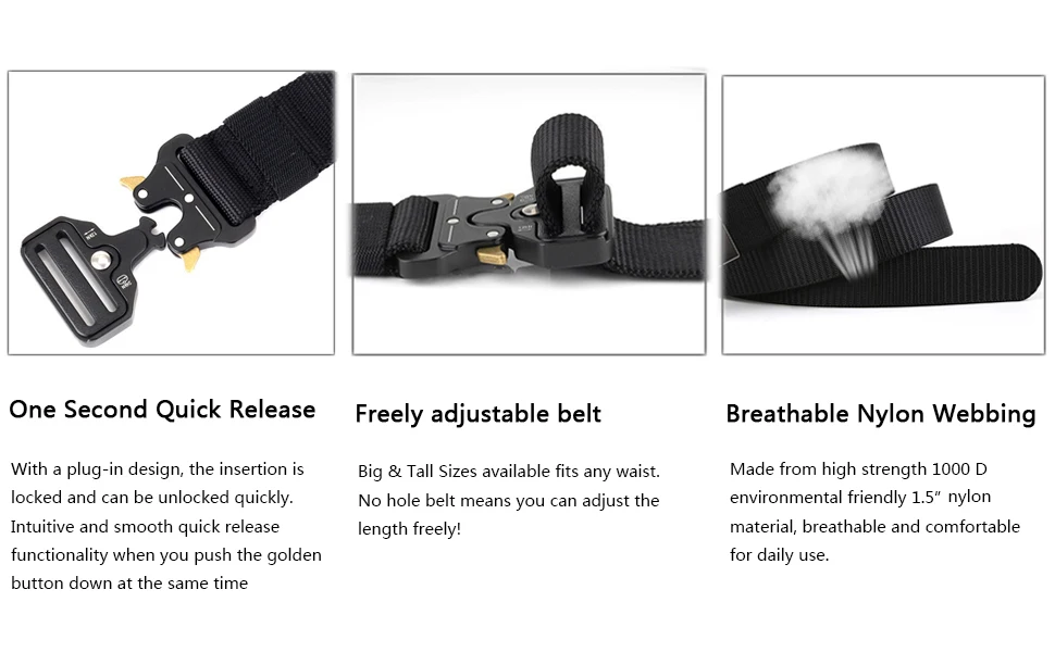 Cinturones tácticos para hombre, cinturón de pistola Web con hebilla de Metal de liberación rápida, resistente, estilo trabajo, senderismo