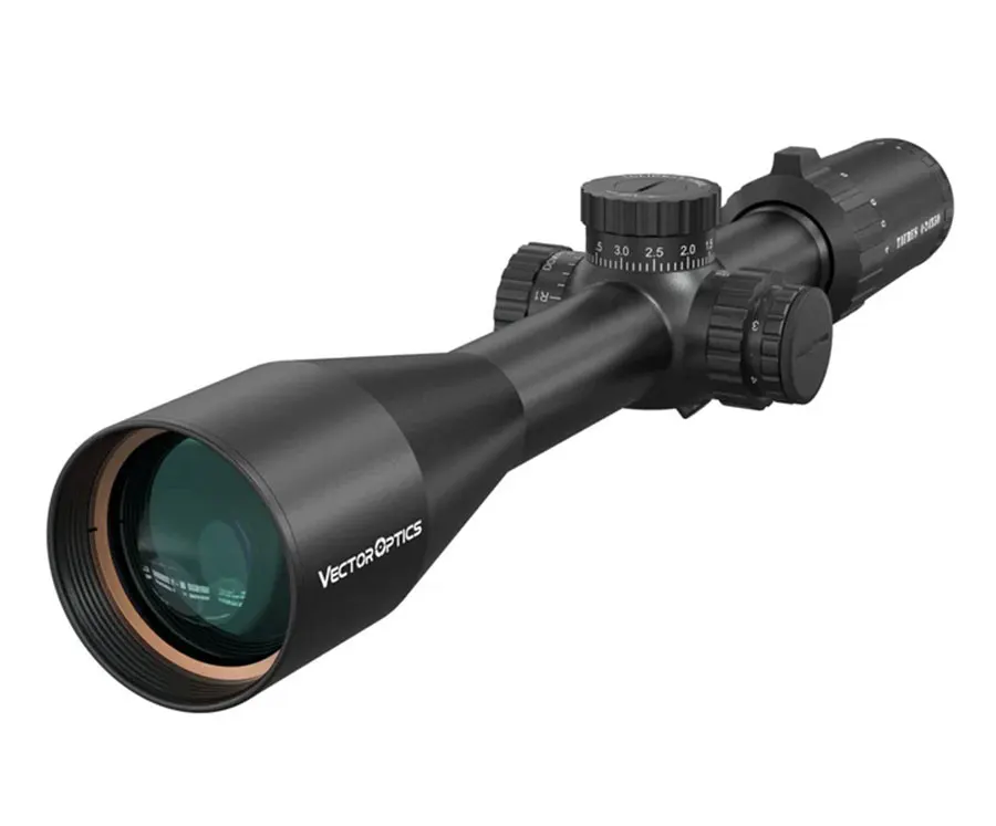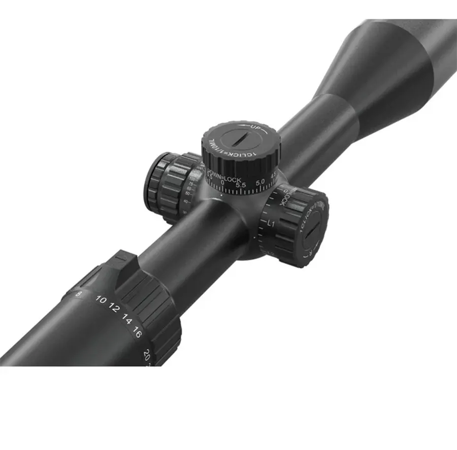 Sistema de bloqueo de torreta.Tire para ajustar, presione para bloquear.Dos torretas de elevación adicionales marcadas con 1 cm y 0,1 MRAD