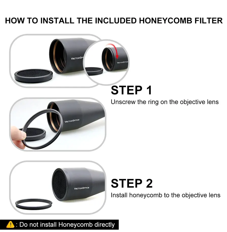 Artículos incluidos: un par de anillos picatinny de 30 mm, paño de limpieza, instrucciones, tapa de lente, parasol de panal, empaquetados en una bonita caja al por menor