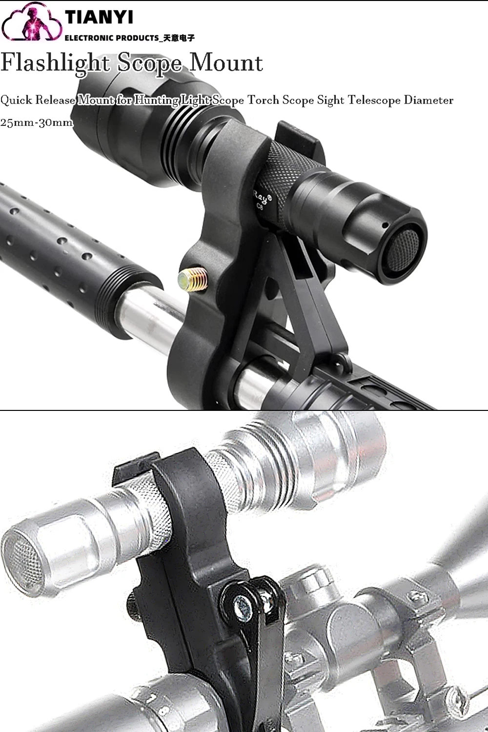 El soporte para linterna se adapta a un diámetro de cuerpo de 25 mm a 30 mm.Asegúrese de que el tamaño del producto pueda satisfacer sus necesidades antes de realizar un pedido (ambos objetos deben tener el mismo diámetro).