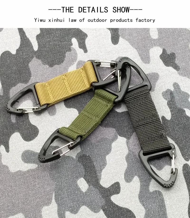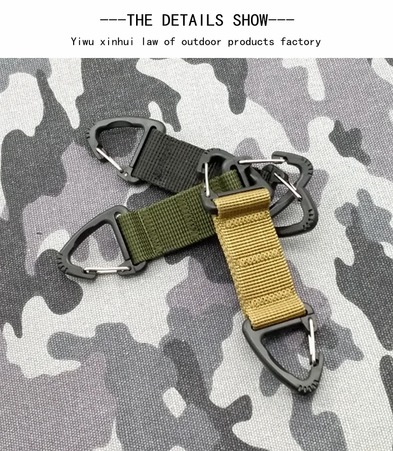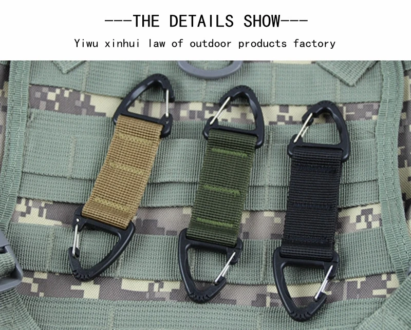 Expansión del sistema MOLLE, correas gruesas de doble capa, con fuerte. Las correas de doble capa 2,5 de polipropileno son duraderas y se pueden combinar con el cinturón LLavero de Metal con hebilla de resorte fuerte duradero El conjunto adopta correas gruesas de doble capa y una fuerte hebilla de resorte, que es duradera. Se puede combinar con cinturón, cinturón táctico y mochila táctica. El sistema MOLLE se utiliza para ampliar el equipo. Pestillo de bloqueo firme y no fácil de aflojar Especificaciones: Nombre del producto: llavero Material del producto: correas de nailon + hebilla triangular de acero plástico * 2 Color del producto: negro, caqui, verde militar Especificaciones del producto: longitud completa 12cm, ancho de las correas 2,5 cm Escenario aplicable: aplicable al sistema MOLLE, colgante rápido bidireccional, con fines variables. Peso del producto: 11 g/unidad