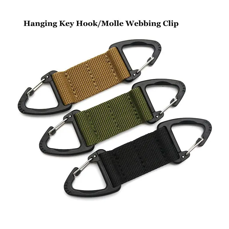 Expansión del sistema MOLLE, correas gruesas de doble capa, con fuerte. Las correas de doble capa 2,5 de polipropileno son duraderas y se pueden combinar con el cinturón LLavero de Metal con hebilla de resorte fuerte duradero El conjunto adopta correas gruesas de doble capa y una fuerte hebilla de resorte, que es duradera. Se puede combinar con cinturón, cinturón táctico y mochila táctica. El sistema MOLLE se utiliza para ampliar el equipo. Pestillo de bloqueo firme y no fácil de aflojar Especificaciones: Nombre del producto: llavero Material del producto: correas de nailon + hebilla triangular de acero plástico * 2 Color del producto: negro, caqui, verde militar Especificaciones del producto: longitud completa 12cm, ancho de las correas 2,5 cm Escenario aplicable: aplicable al sistema MOLLE, colgante rápido bidireccional, con fines variables. Peso del producto: 11 g/unidad